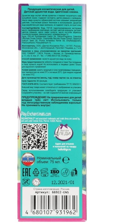 Детская душистая вода «Enchantimals. Цветочная сказка» ТМ «Милая леди» непременно понравится вашему ребёнку: