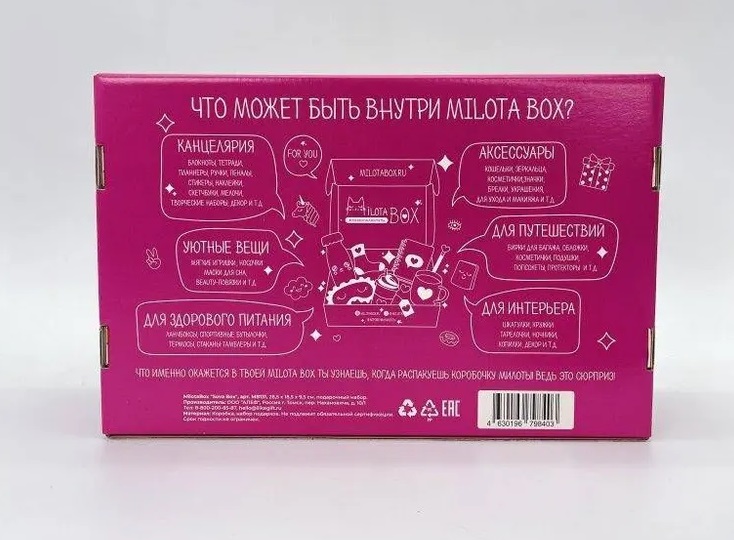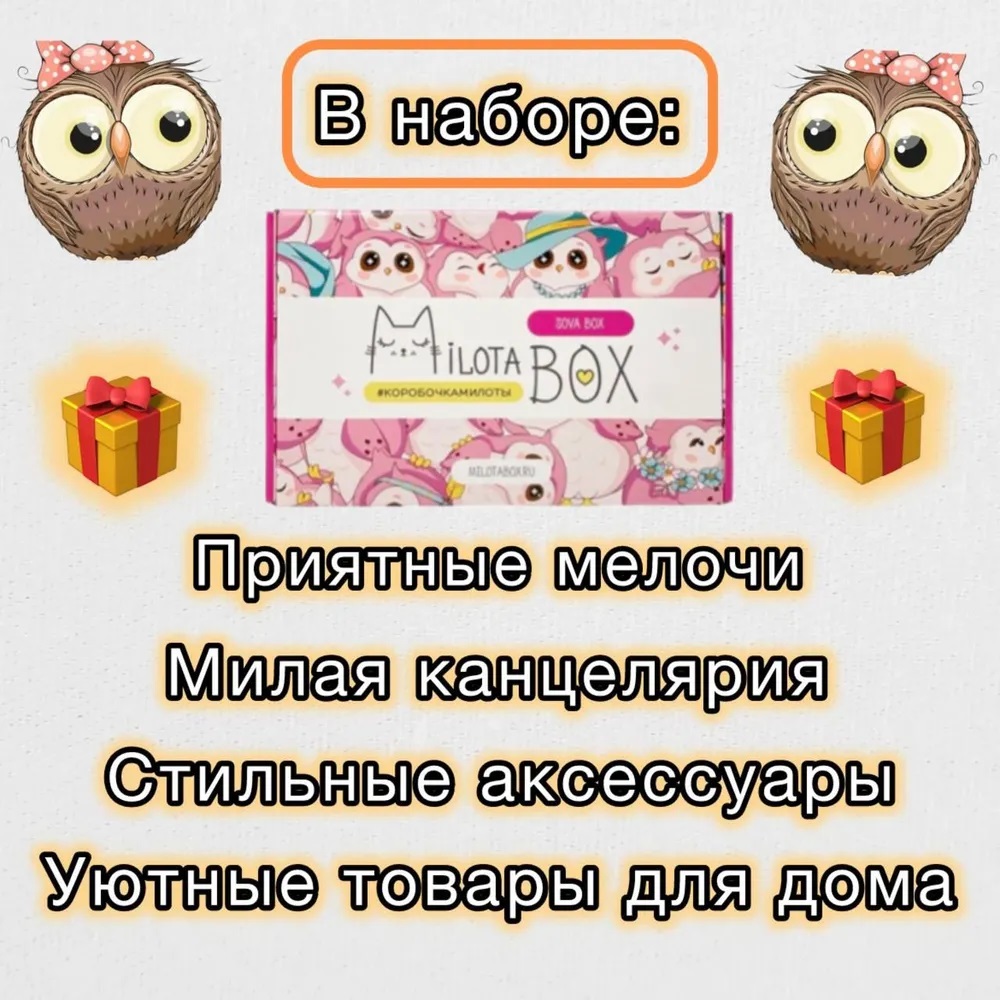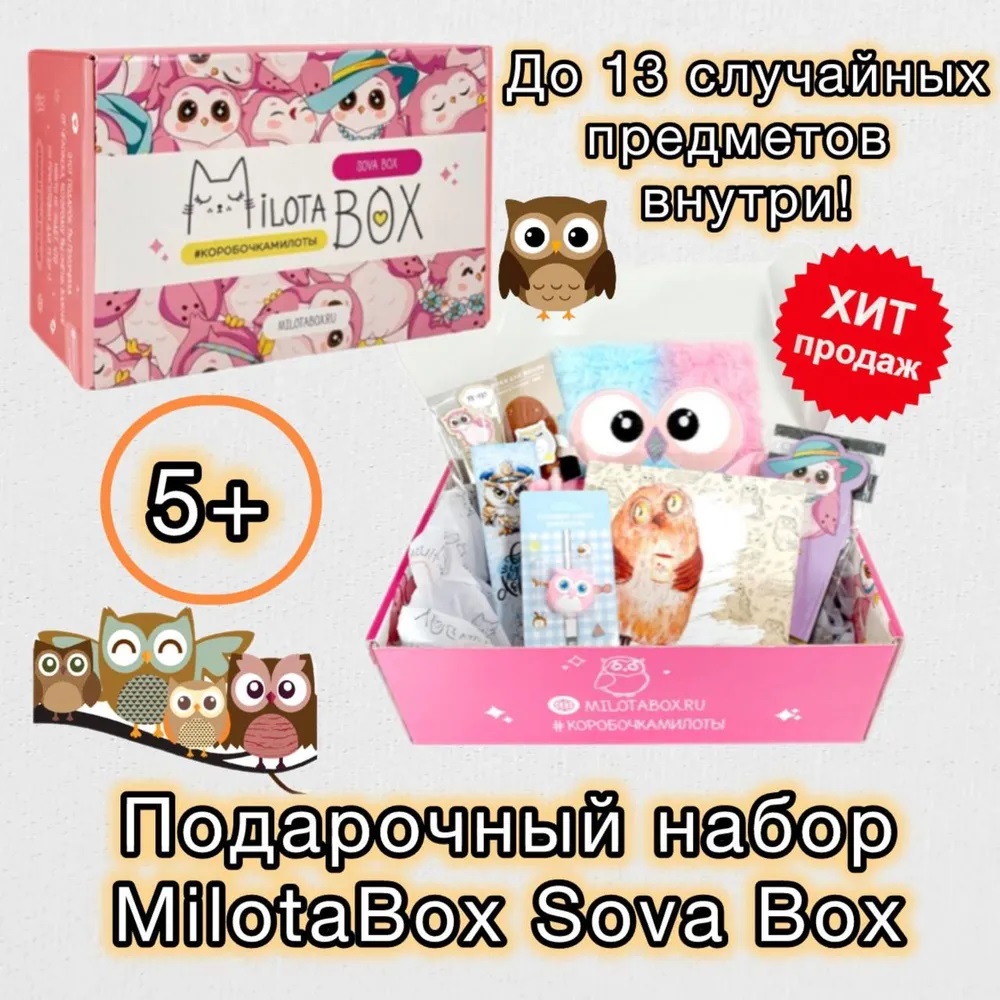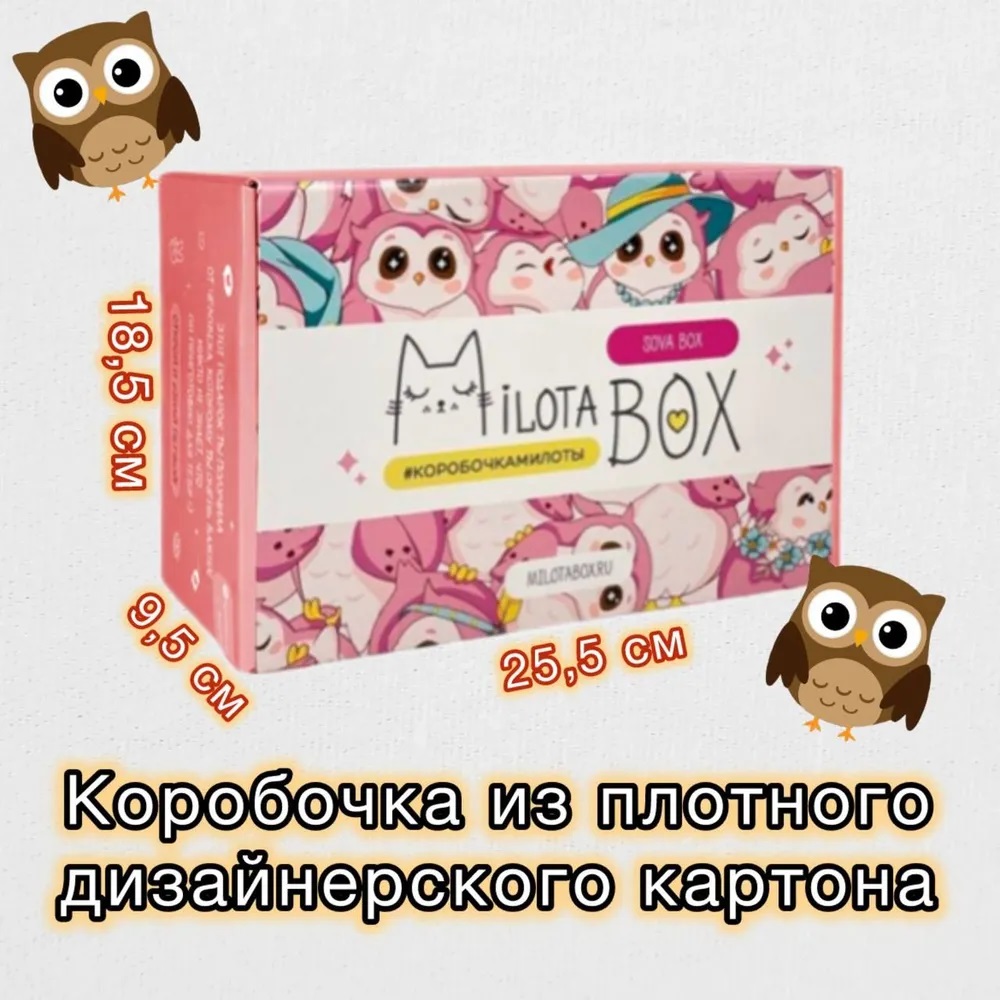 Подарочный набор MilotaBox Sova Box MB131Каждая коробочка милоты наполнена необычными вещицами, которыми будет приятно пользоваться в повседневной жизни: милая канцелярия, уютные товары для дома, стильные аксессуары, предметы для здорового образа жизни и приятные мелочи. Наполнение MilotaBox стало ещё лучше! Больше подарков! Внутри каждого MilotaBox находится до 13 предметов на одну тематику, упакованных в стилизованную бумагу тишью.