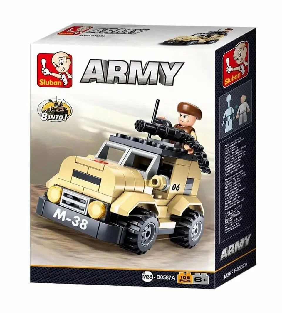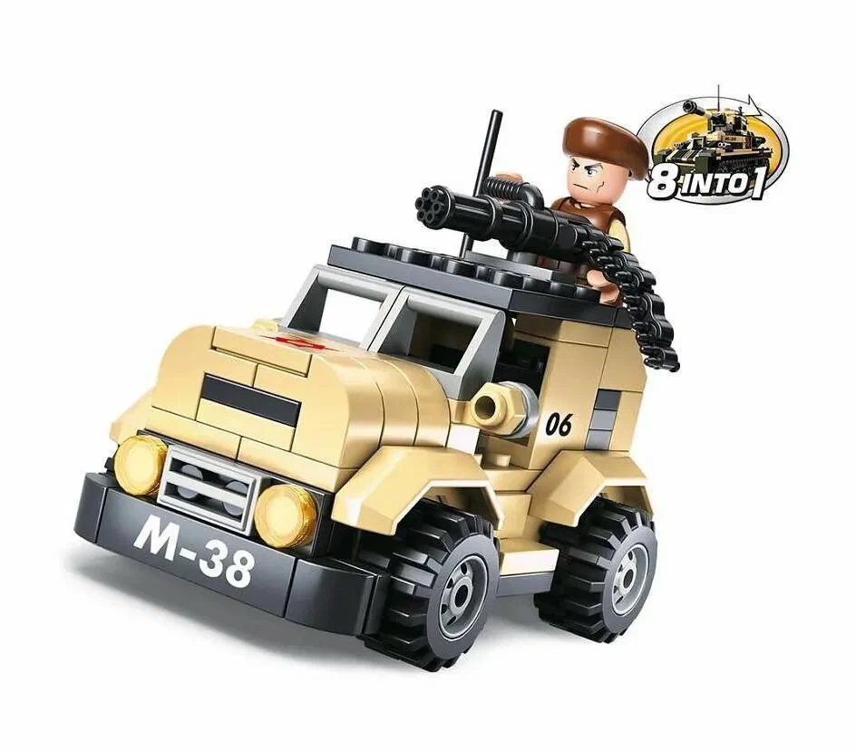 Конструктор "Военная техника" с фигуркой поможет разнообразить игры детей. Собери оснащённую военной техникой машину и посади в неё военного! Получившаяся игрушка станет гордостью игрушечной коллекции ребёнка. В комплекте 102 детали: - фигурка в комплекте - все детали легко и плотно соединяются между собой Конструктор – это и интересная игра, и обучение в процессе. Конструирование учит ребёнка усидчивости, внимательности и логике. С собранной игрушкой можно играть в разные сюжетно-ролевые игры, осваивать новые социальные роли и развивать фантазию. Размер: 5 x 14 x 19 см. Рекомендовано детям от 6 лет. Конструктор в виде джипа бежевого цвета с пулеметом и фигуркой водителя. Во время сборки развивается усидчивость, внимательность и мелкая моторика. Все детали выполнены из безопасного для детей пластика. От 6 лет.