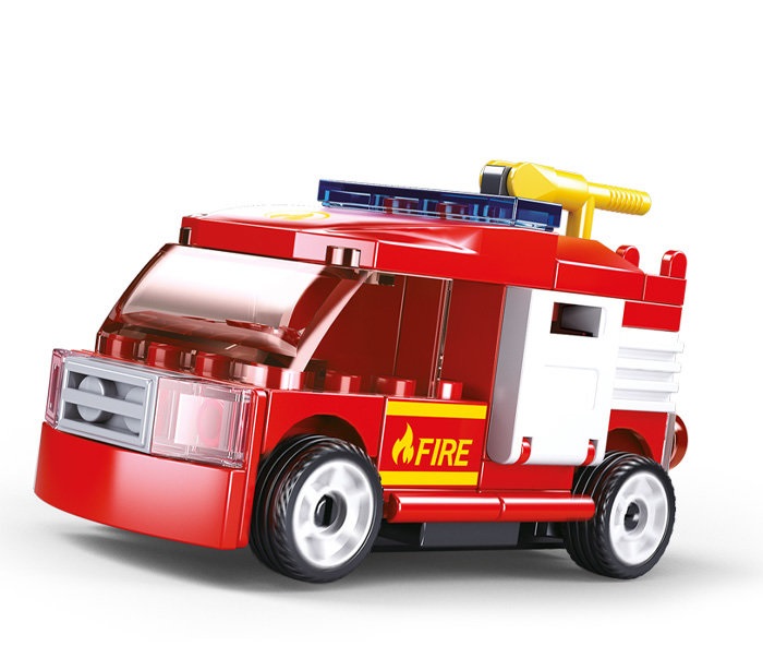 После сборки блочного конструктора у вас получится стилизованная модель пожарной машины.