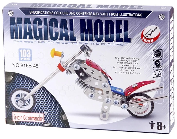 С таким металлическим конструктором мальчики смогут почувствовать себя настоящими автомеханиками и самостоятельно сконструировать модель мотоцикла.