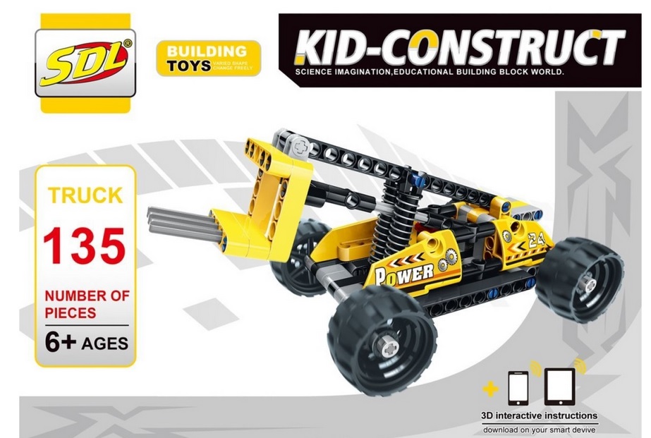 Конструктор Погрузчик Материал пластик Тип игры стройка Кол-во деталей 135 шт Соединение блочное Размер упаковки 240x170x30 мм