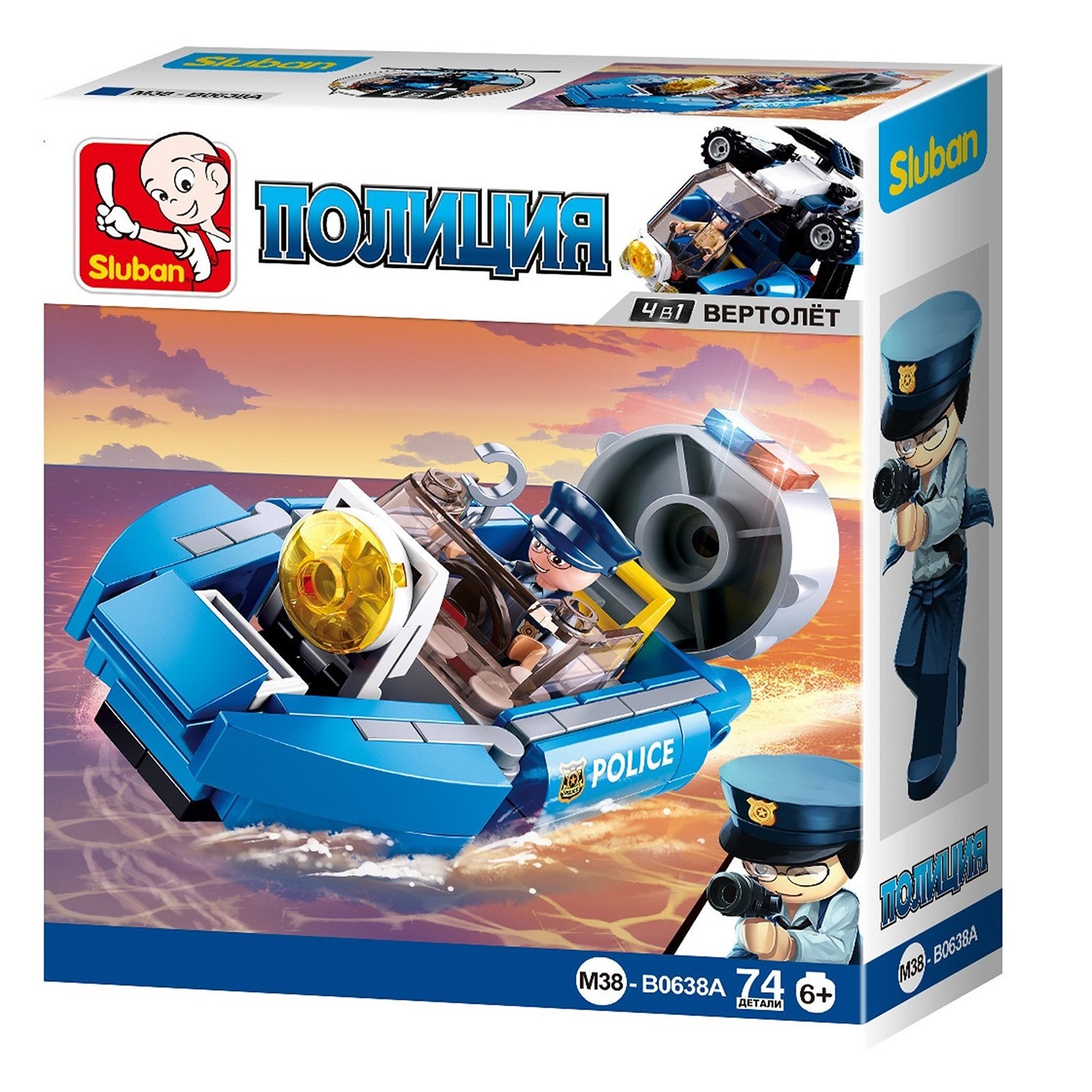 Конструктор «Полицейский катер» с фигуркой полицейского:- в комплекте 74 детали- фигурка полицейского- все детали легко и плотно соединяются между собойТакой полицейский катер пригодится юному правозащитнику. Ребёнок сможет придумать и воссоздать разнообразные сценки для своих игр. Конструктор — это и интересная игра, и обучение в процессе. С собранной игрушкой можно играть в разные сюжетно-ролевые игры, осваивать новые социальные роли и развивать фантазию. Конструирование учит ребёнка усидчивости, внимательности и логике. Размер: 5x14x17 см.Рекомендуется для детей от 6 лет.