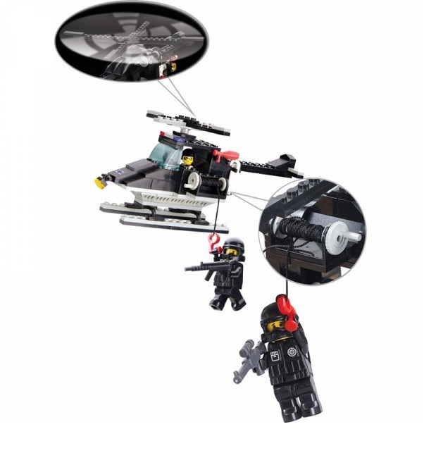 Преследовать в игре опасных преступников можно с помощью двух транспортных моделей, воздушной и наземной. Оригинальные автомобиль и вертолет помогут отлично дополнить развернувшиеся сюжеты. Однако, какими бы эффектными ни были декорации, ни одна игра не будет полноценной без главных действующих персонажей. Именно для этого в комплект входят несколько фигурок как сотрудников спецназа, так и опасных нарушителей закона и правопорядка.