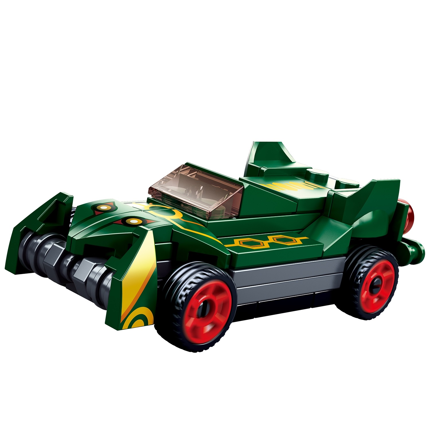 Тематический блочный конструктор содержит 54 детали, соединив которые у вас получится зелёная гоночная машина. Главное преимущество игрушки - это наличие пружинного механизма. Соберите модельку, потяните машину назад и отпустите - она поедет!