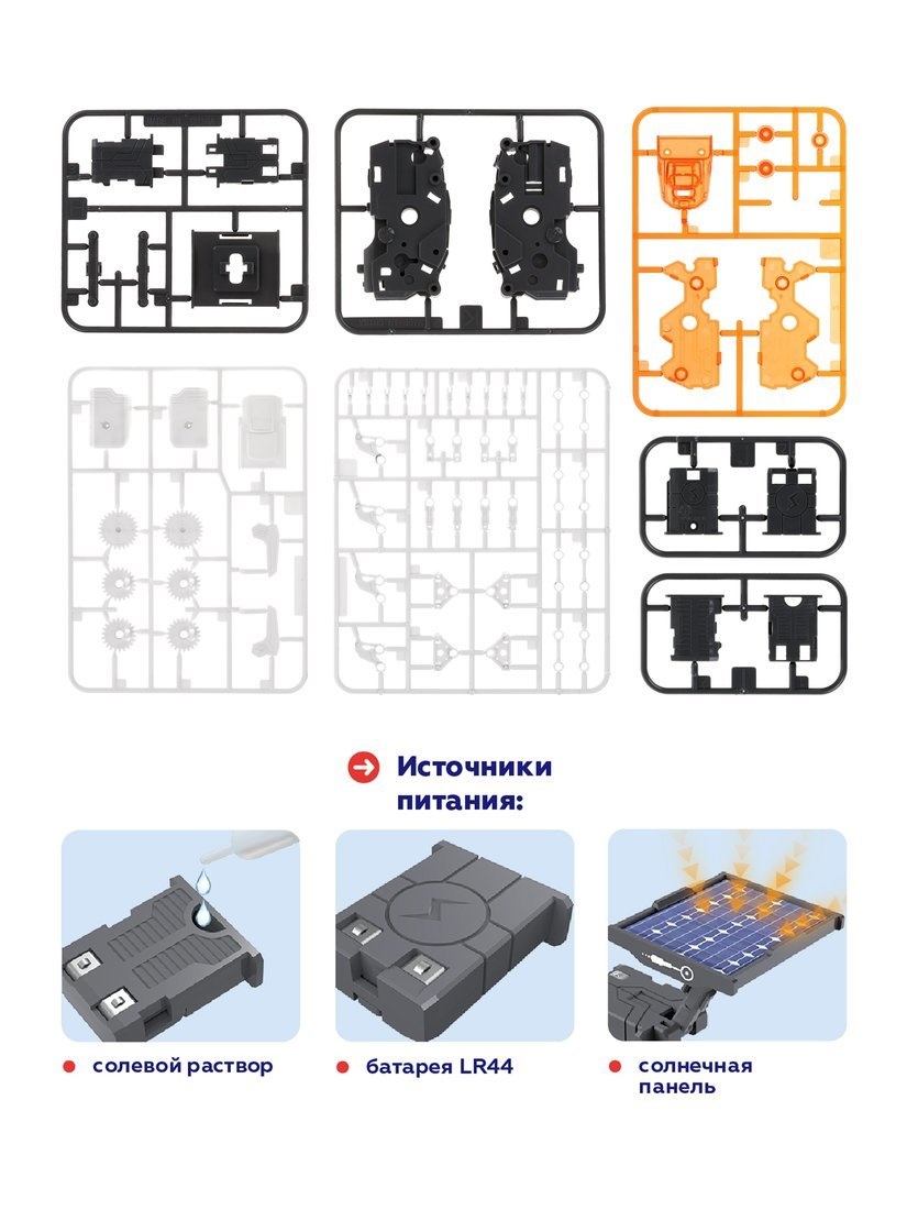 Игрушка приходит в движение от трех источников питания: от солнечной панели, солевого раствора или обычной батарейки.
