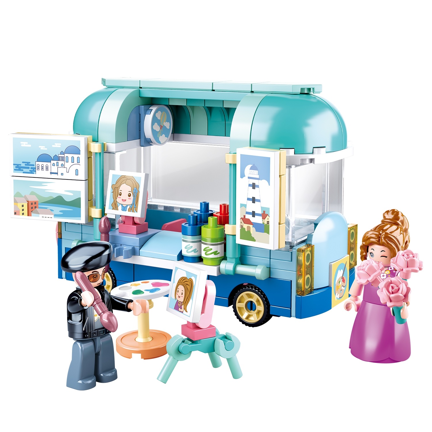 Тематический конструктор содержит 184 детали и позволяет собрать лавку худохника.