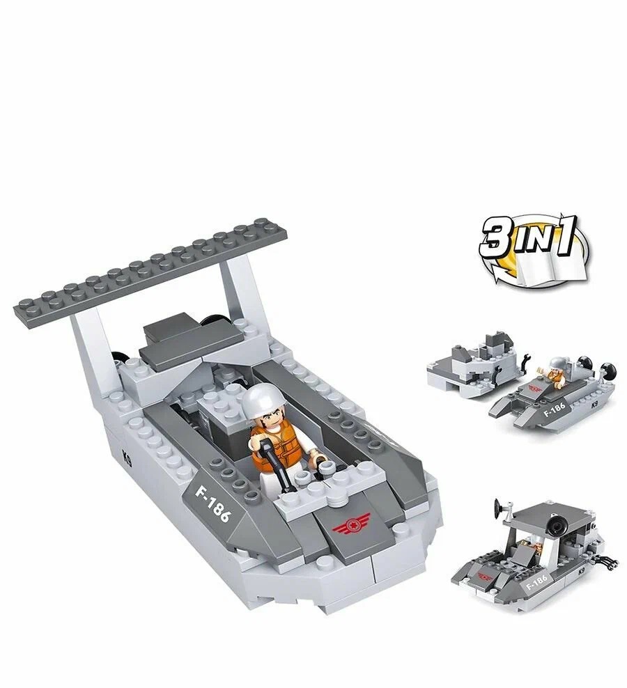 Конструктор 3 в 1 Army позволит собрать различные модели передвижных средств. Их внешний вид легко видоизменяется посредством добавления или перемещения деталей. С таким арсеналом не страшно будет отправляться в сражение. Маленькая армия без труда справится с выполнением самых сложных миссий.