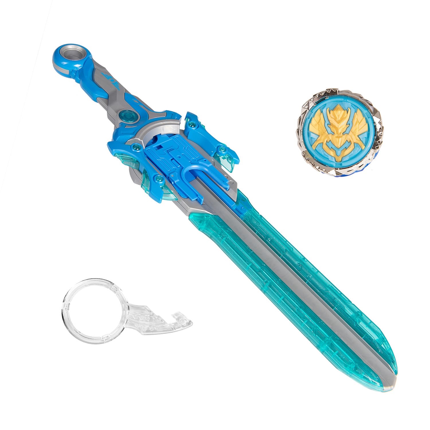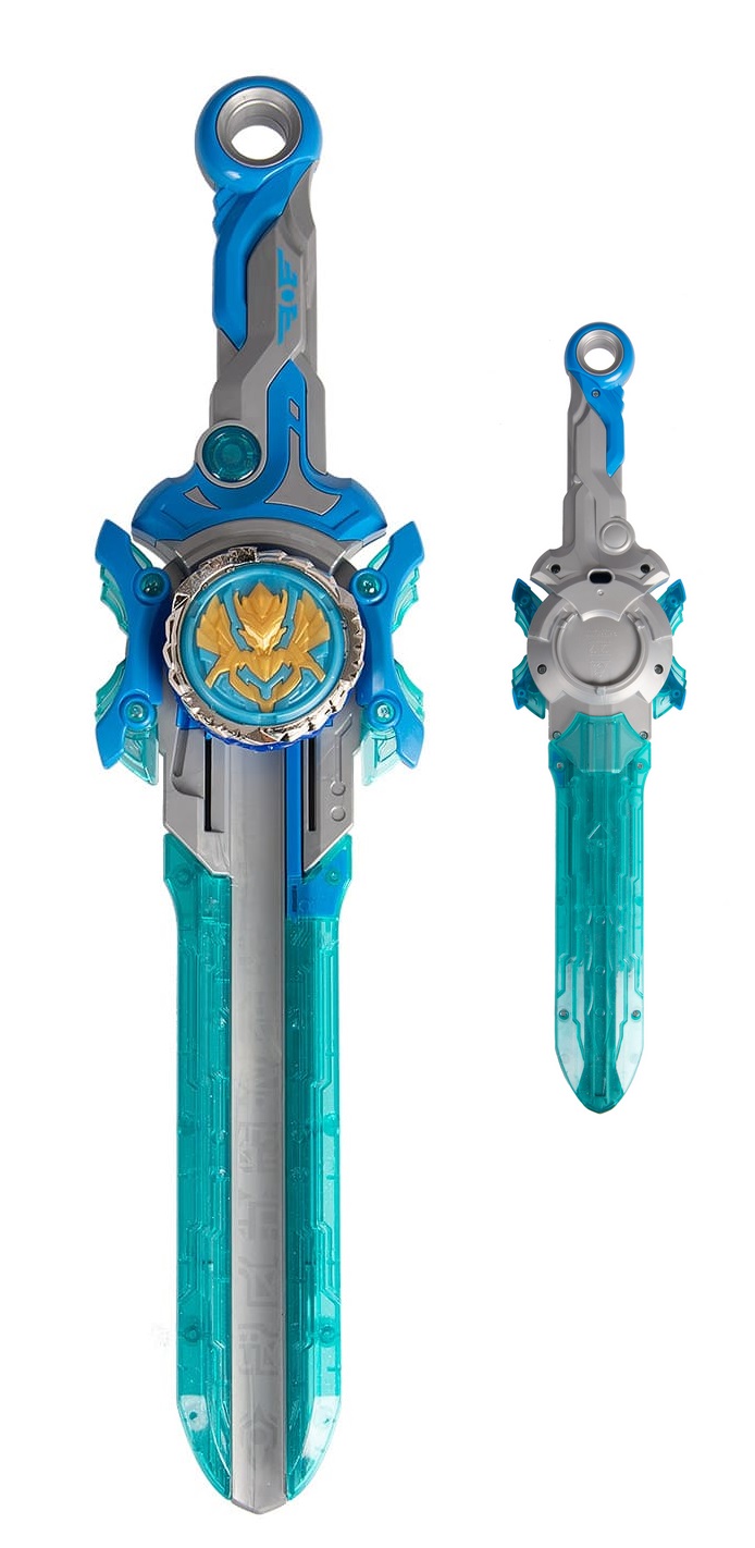 Вставь Надо в специальное отверстие до щелчка, раскрути волчок с помощью ножен, нажми кнопку запуска. Меч не только пусковая установка, но и монтажный инструмент.