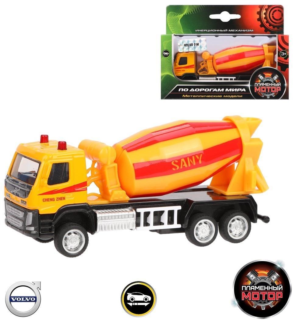 Уменьшенная металлическая копия грузовика-автобетоносмесителя Volvo имеет максимально реалистичный внешний вид. Она выполнена в масштабе 1:72. Машинку отличает тщательная детализация и интересная функциональность - у неё вращается барабан. В игрушке предусмотрен инерционный механизм движения, который позволяет разогнать и отпустить автомобиль, и он быстро поедет вперёд.