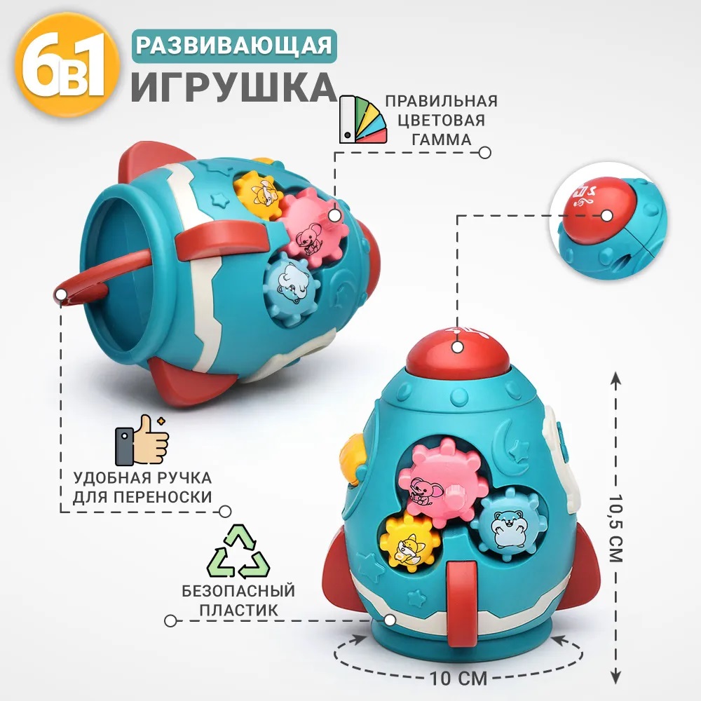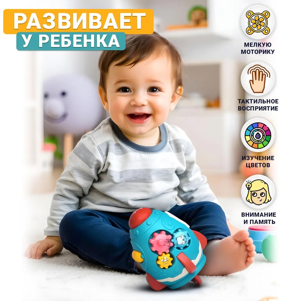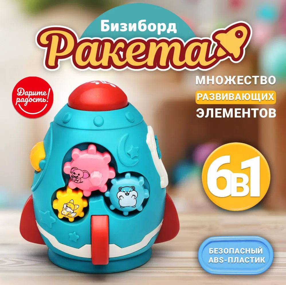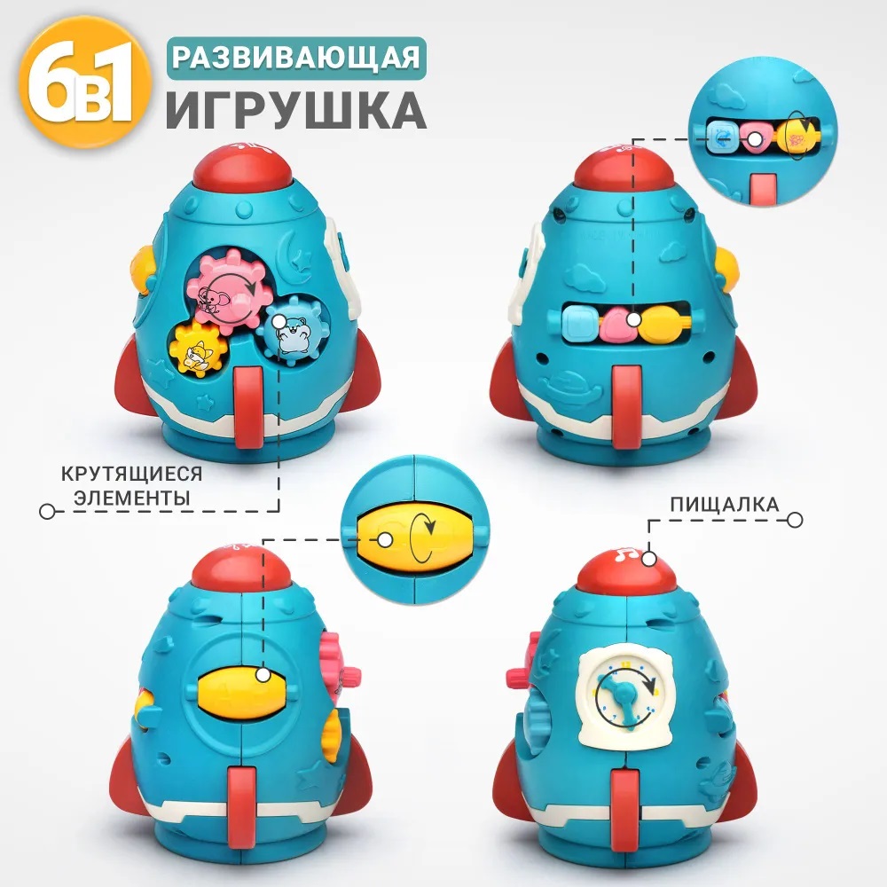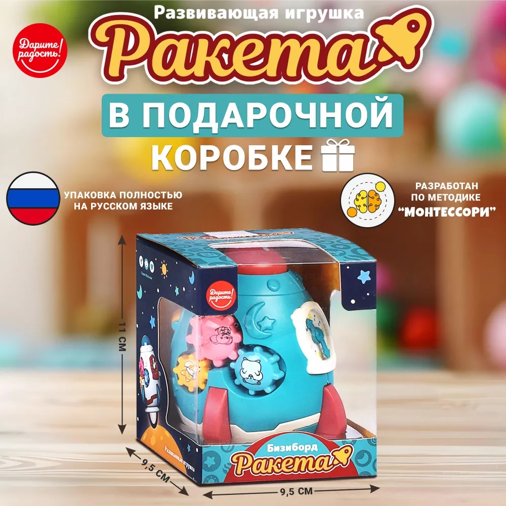 Развивающая игрушка для малыша от 6 месяцев / Бизиборд UT0050 Ракета в коробке Синий Дарите радость!
