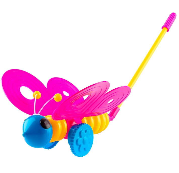 Каталка «Бабочка» обязательно понравится девочкам младшего возраста. При движении бабочка «машет» яркими розовыми крылышками, а длинная ручка предназначена специально для опоры малышки. Прогулки станут особенным удовольствием с такой игрушкой.
