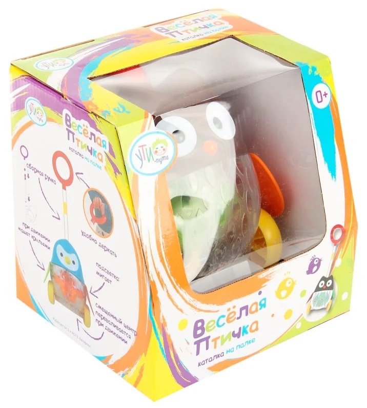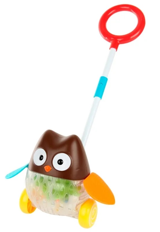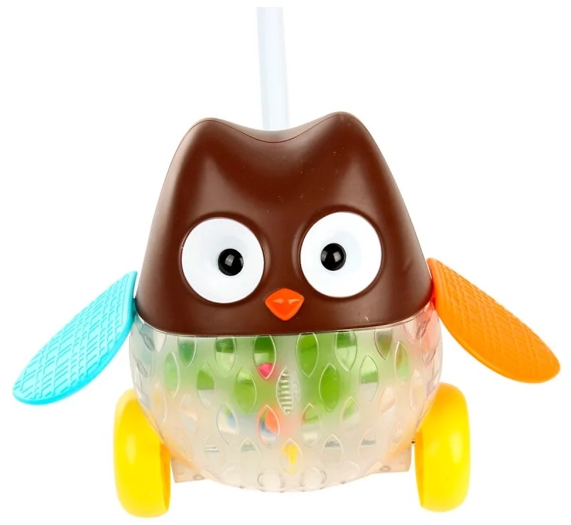 Такая каталка станет не только любимой игрушкой малыша, но и его надежным помощником и опорой при первых шагах. Представленная модель - идеальный вариант для ребенка от года, именно в этот период кроха учится ходить. Выполненная в виде каталки с ручкой, данная игрушка позволит Вашему малышу чувствовать себя более уверенно, имея под рукой опору, чтобы шагать вперед. Взаимодействуя с каталкой, ребенок научится рассчитывать свои силы, будет укреплять мышечный корсет. Кроме того, игрушка обладает забавным внешним видом, прозрачная часть ее корпуса светится, при движении совушка машет крыльями. Внутри совушки есть гремящие элементы, шумящие при движении.