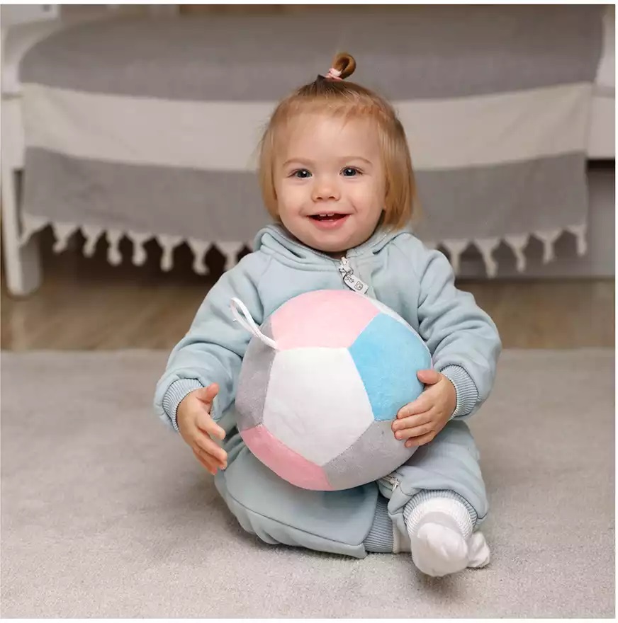 Погремушка внутри мячика и различные подвижные игры с ним способствуют развитию общей координации движений, внимания, воображения и фантазии. При играх с плюшевым мячом дети задействуют все группы мышц.