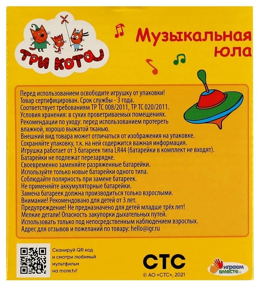 Юла «Три кота» ТМ «Играем вместе» непременно понравится маленьким поклонникам мультсериала про любознательных котят: