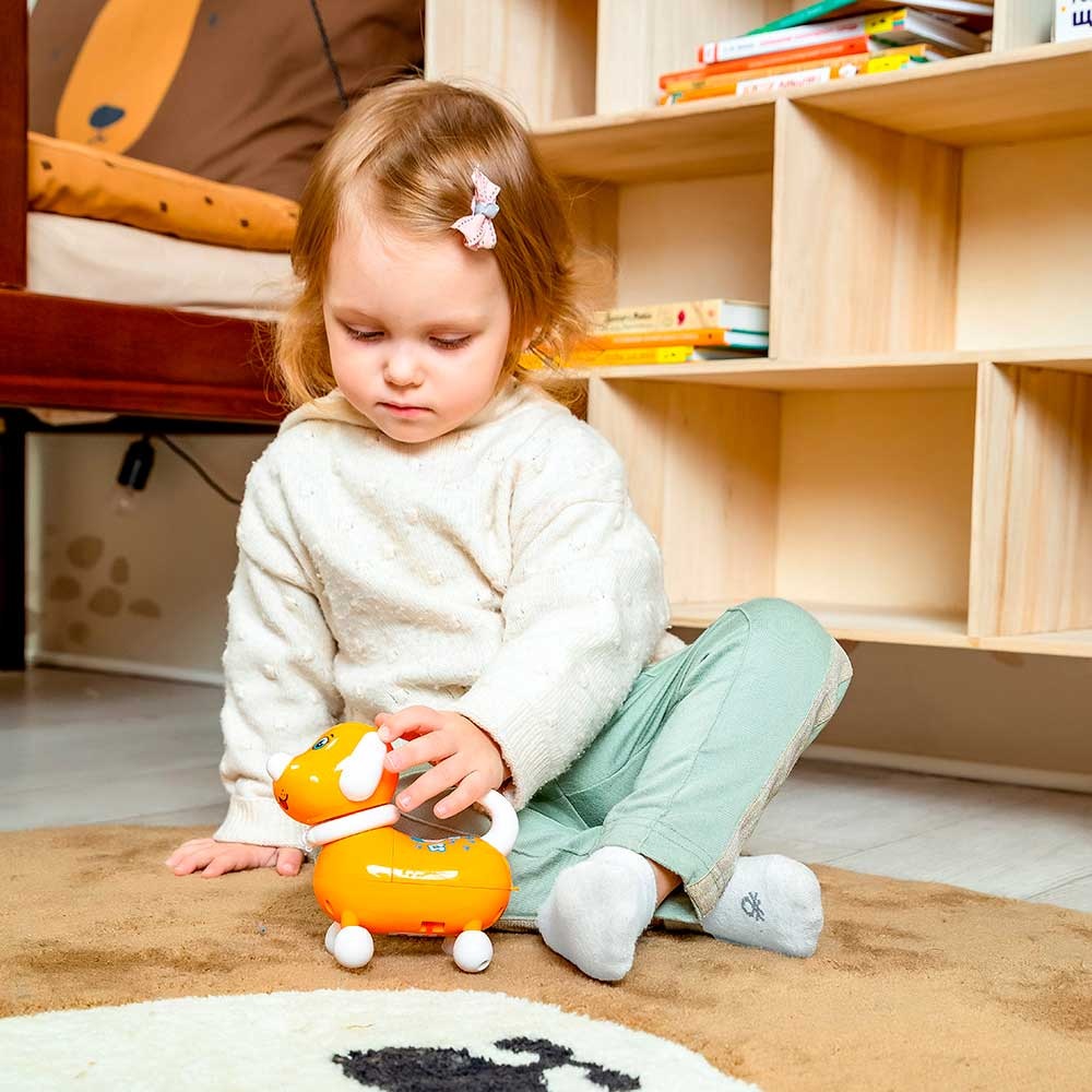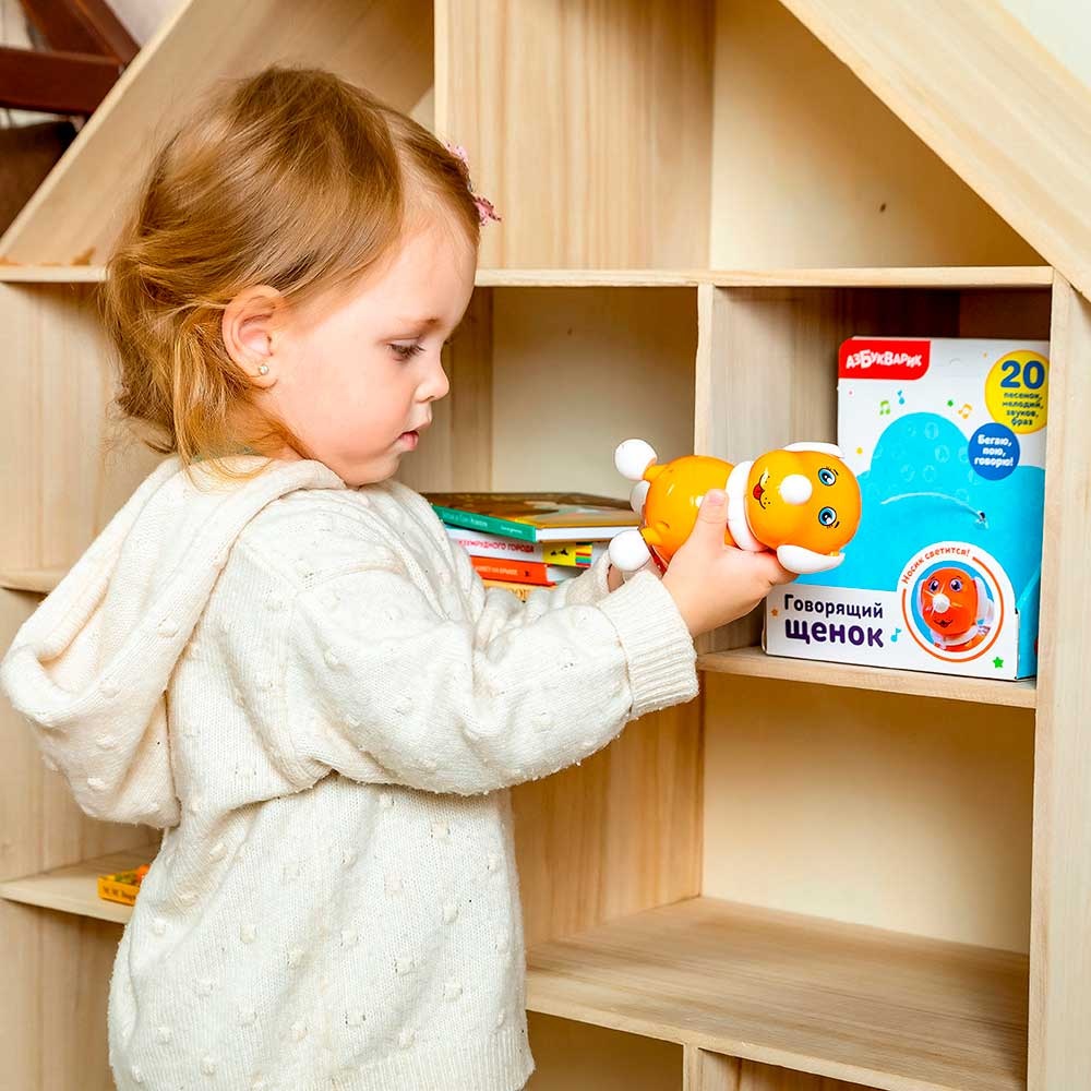 Развивающая интерактивная игрушка «Говорящий щенок» Азбукварик 2989 станет лучшим другом вашего малыша. Ведь наш озорной щенок готов играть сколько угодно! Если нажать на кнопочку, щенок оживет и будет бегать за вашим малышом совсем как настоящая собачка.