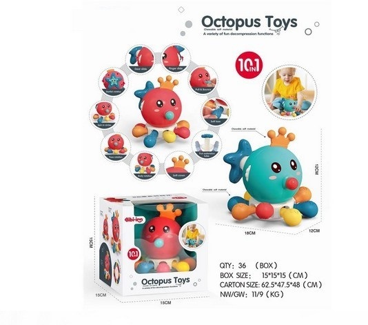 Игрушка развивающая "Осьминожка", 10в1, съемные детали, в/к 15*15*15 см