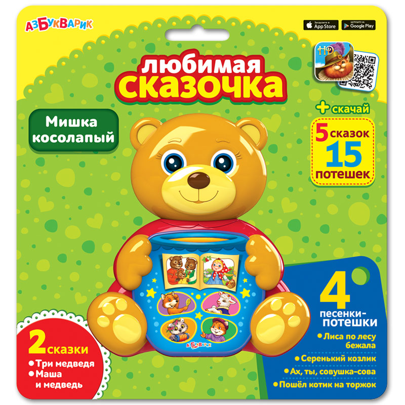 Игрушка в виде мишки подарит отличное настроение! Это так весело – нажимать на кнопочки, слушать народные сказки и песенки: «Три медведя», «Маша и медведь», «Лиса по лесу бежала», «Серенький козлик», «Ах, ты, совушка-сова», «Пошёл котик на торжок».