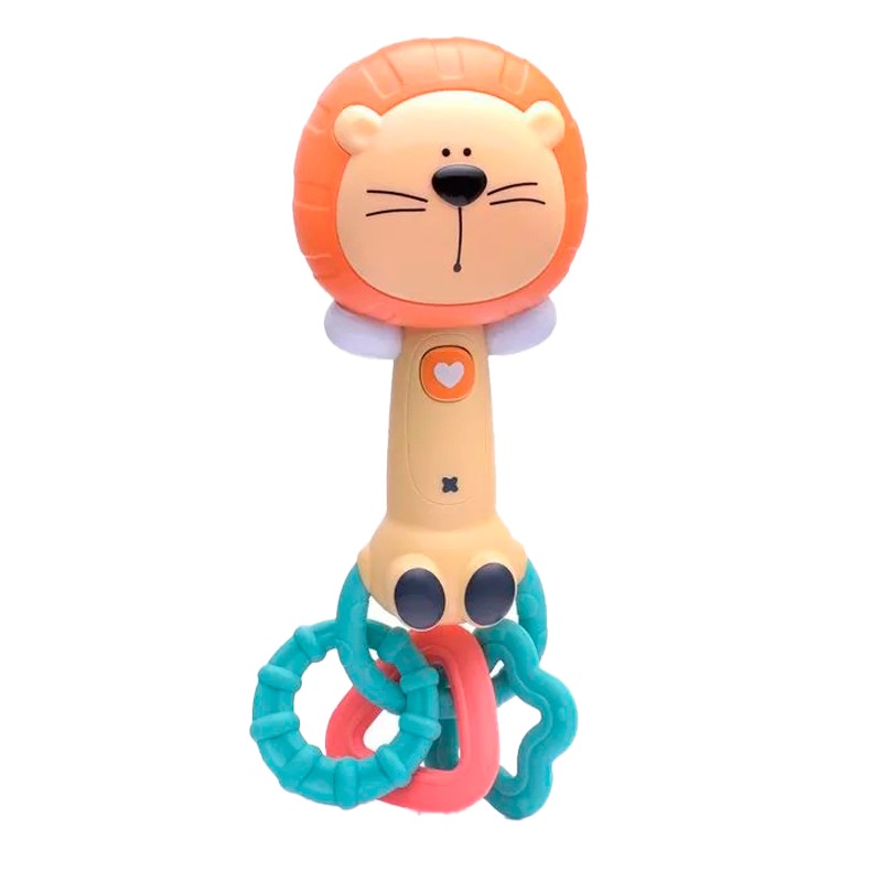 Погремушка Львёнок на батарейках Наша игрушка Y0014-3. Интересная игрушка-погремушка, которая сочетает в себе классическую погремушку и проигрывание мелодий. Игрушка имеет забавный внешний вид в виде львёнка. Электропитание осуществляется от батарейки.