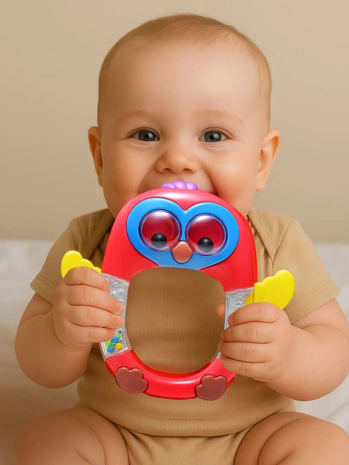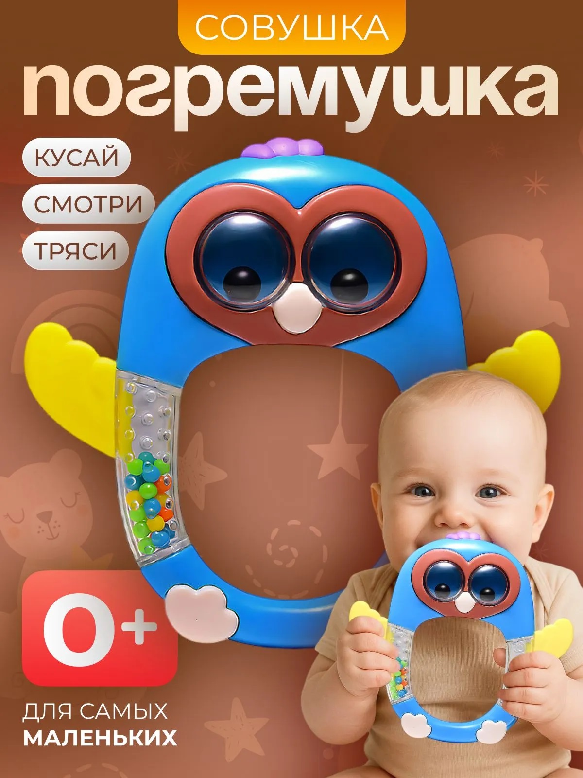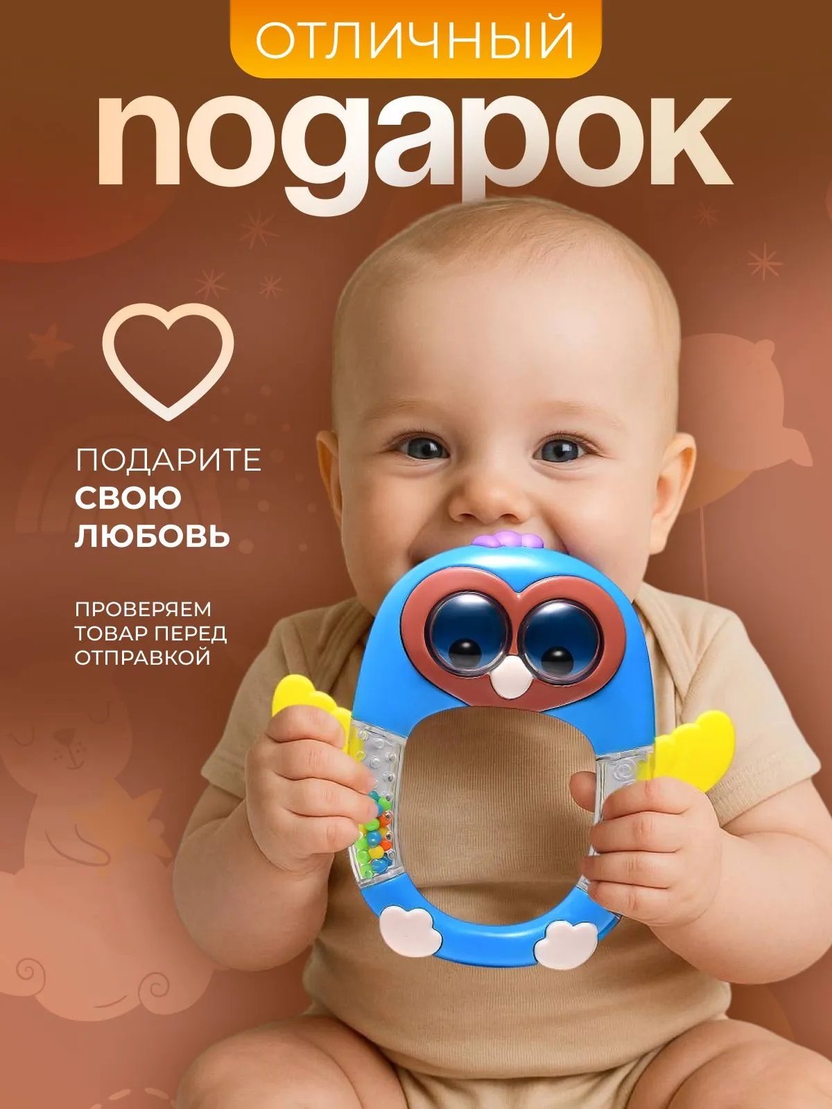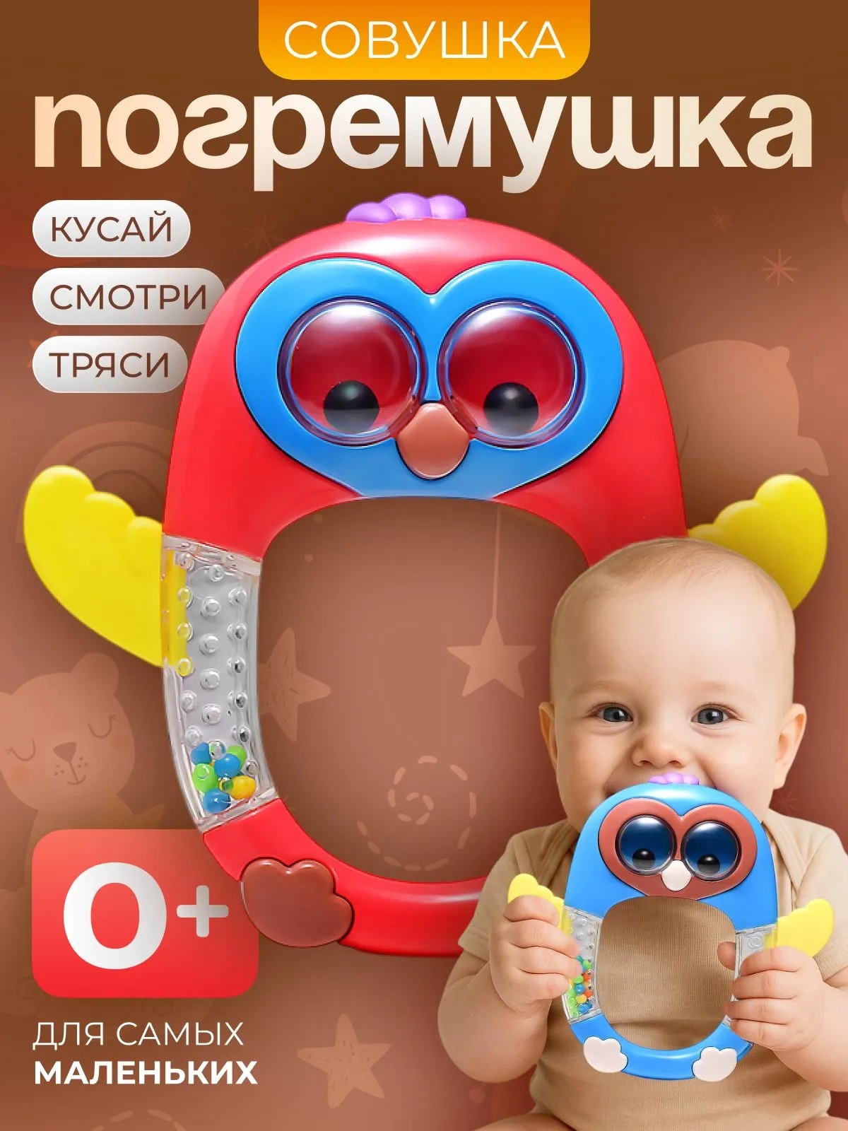Размер погремушки: 13х12 см. Материалы: пластмасса, полимерные материалы. Соответствует требованиям безопасности продукции. Для детей от 3-х лет.
