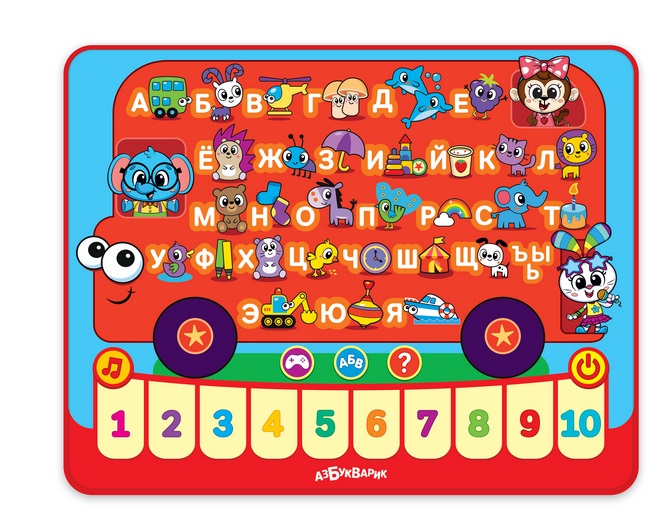 С новым планшетиком «Азбука Весёлый автобус» скучать не придется! Ребенку понравится изучать буквы с говорящими картинками: А – Автобус, В – Вертолет, Е – Ежевика, всё просто! Учить буквы можно в двух режимах: «Буквы» и «Звуки». Познавательные песенки, 100 вопросов и загадок в стихах помогут проверить знания и сделают обучение более увлекательным! А в игре «Волшебное пианино» ребенок сможет сам сыграть 10 популярных мелодий («Каравай», «Песенка про кузнечика», «Чижик-пыжик», «Два весёлых гуся», «Калинка» и др.) и почувствовать себя настоящим музыкантом.