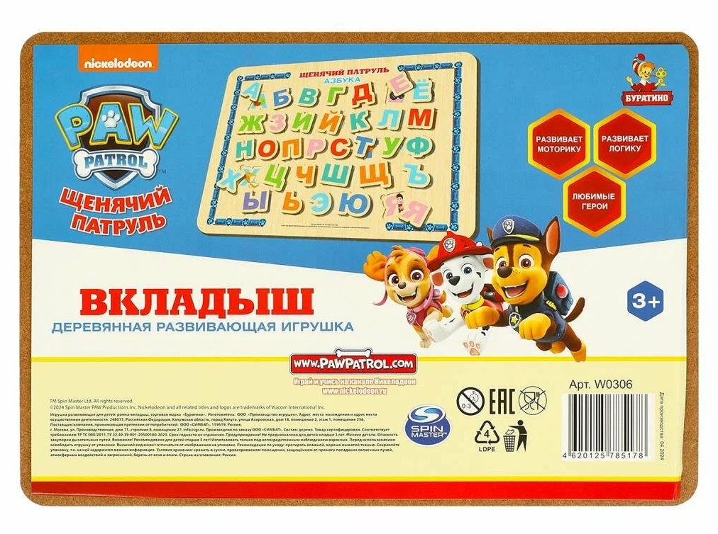 Алфавит дерев. "Щенячий патруль"
