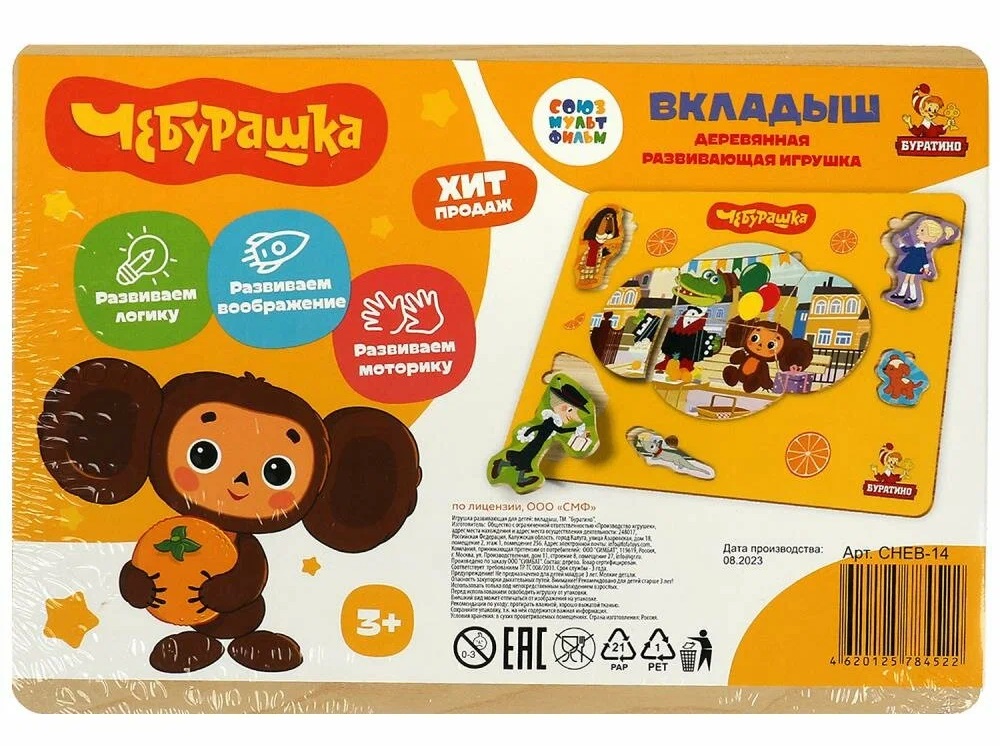 Деревянная игрушка - вкладыши «Союзмультфильм. Чебурашка» ТМ «Буратино» - отличная развивающая игра для маленьких любознаек: