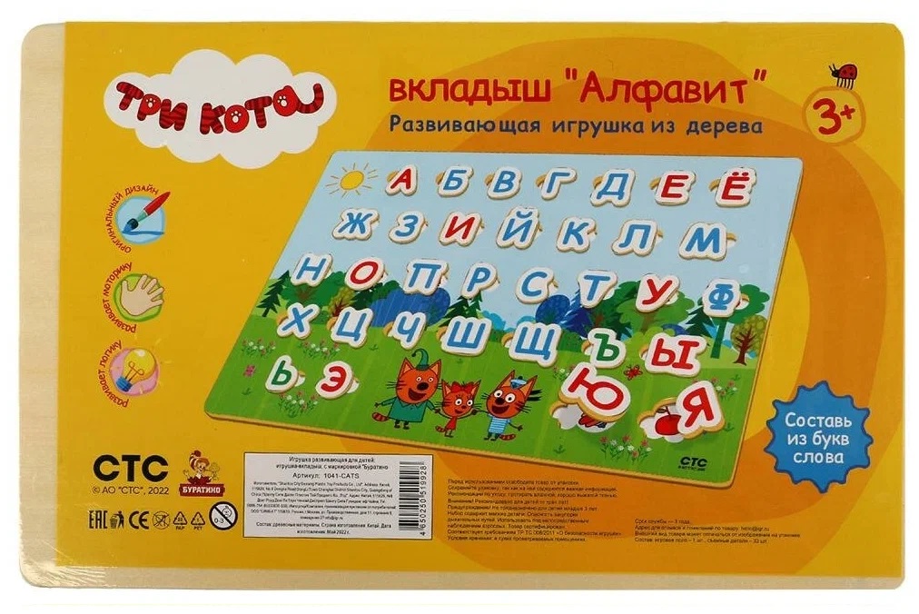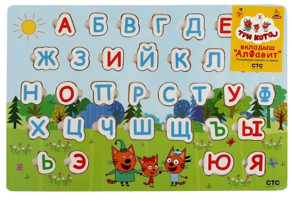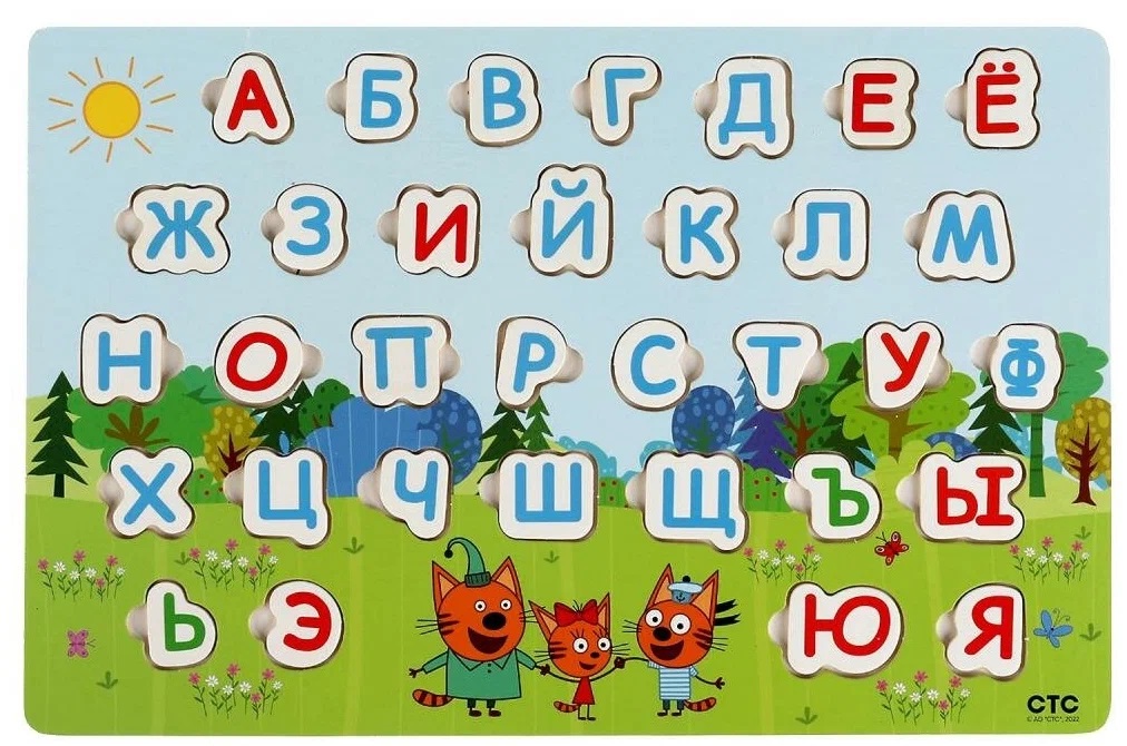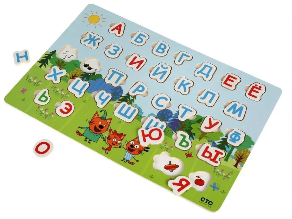 Деревянная рамка-вкладыш «Три кота. Алфавит» ТМ «Буратино» - отличная развивающая игра для маленьких поклонников одноимённого мультсериала: