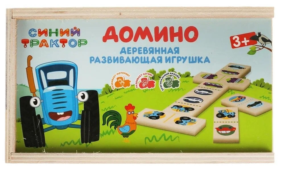 Развивающая игрушка из дерева «Синий трактор. Домино» ТМ «Буратино» непременно понравится маленьким поклонникам мультсериала про весёлый трактор: