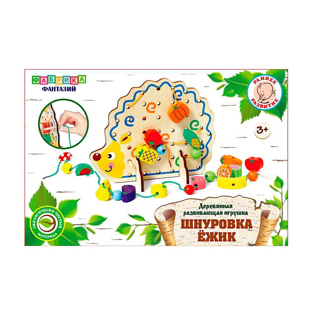 Деревянная игрушка-шнуровка "Ежик с поклажей" Фабрика Фантазий 54398 сможет порадовать любого ребенка, а также поможет своему юному обладателю проводить время не только увлекательно, но и с пользой. В комплект входят основа, выполненная в виде забавного ежика, шнурочек, а также бусинки, которые представляют собой разнообразные фрукты и ягоды. Ребенку предстоит вдевать шнурок с вкусняшками в отверстия, расположенные по всей площади фигурки миловидного зверька.