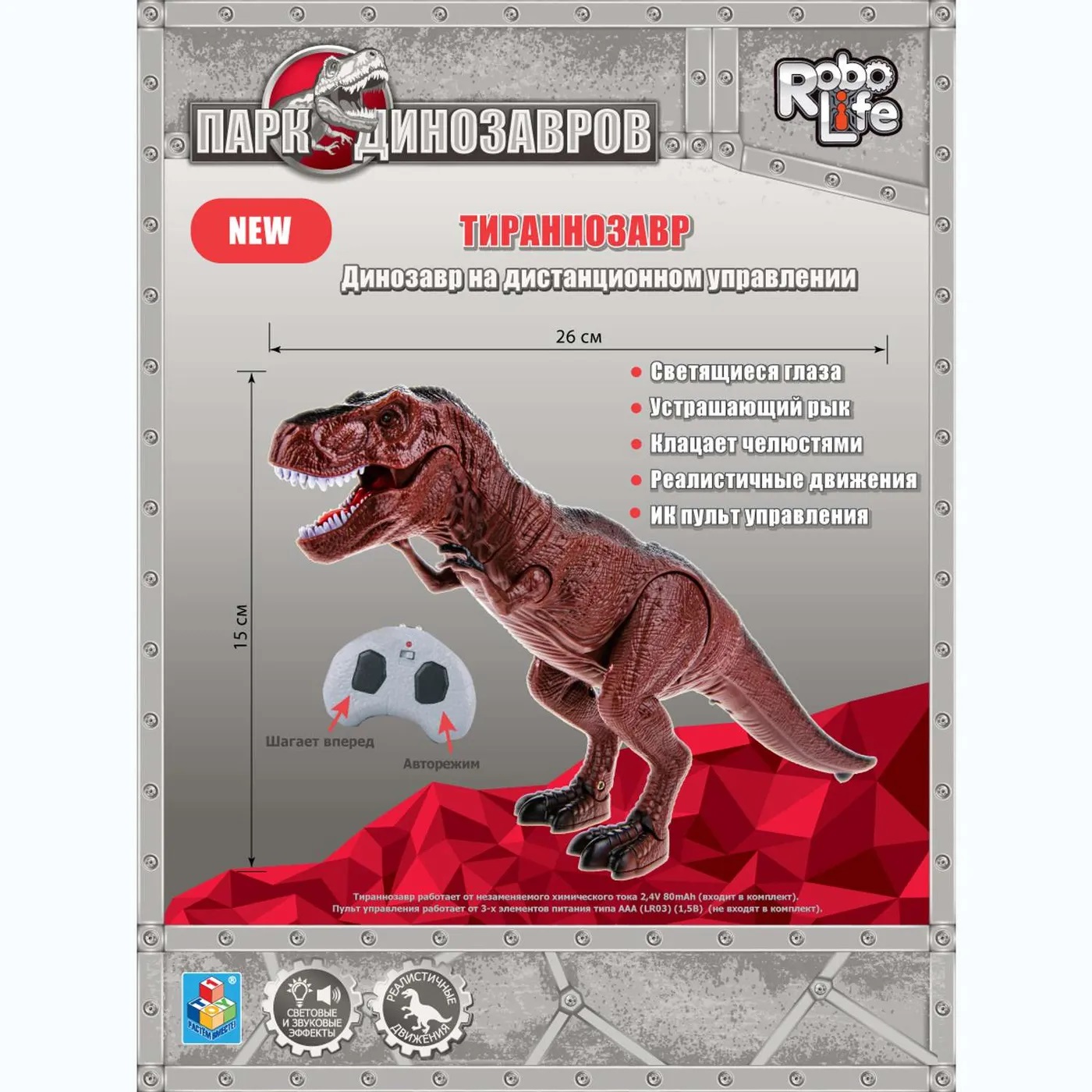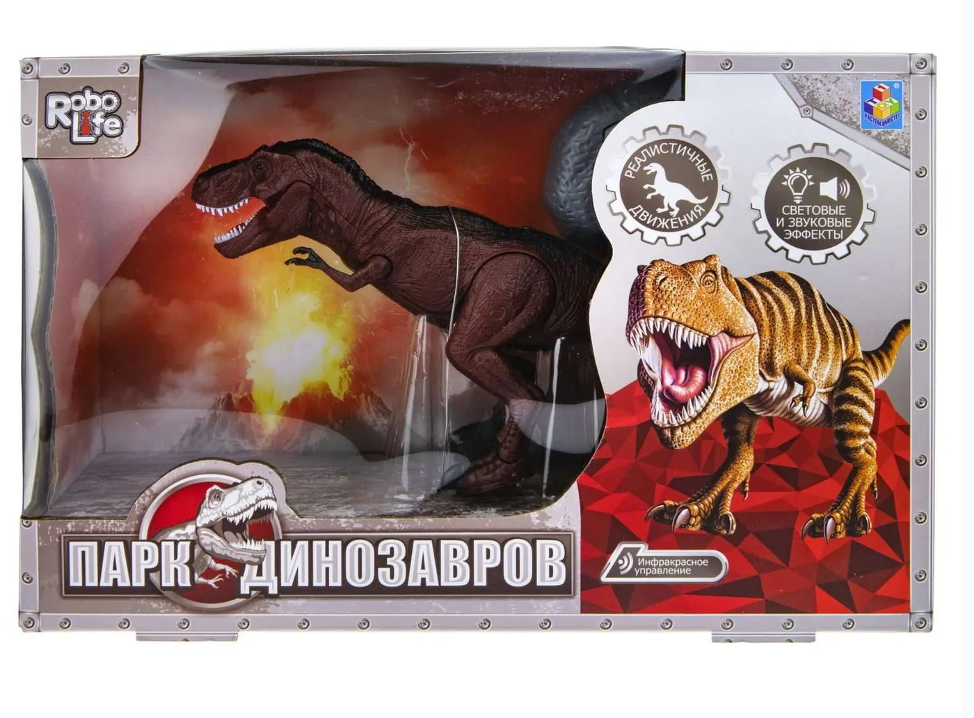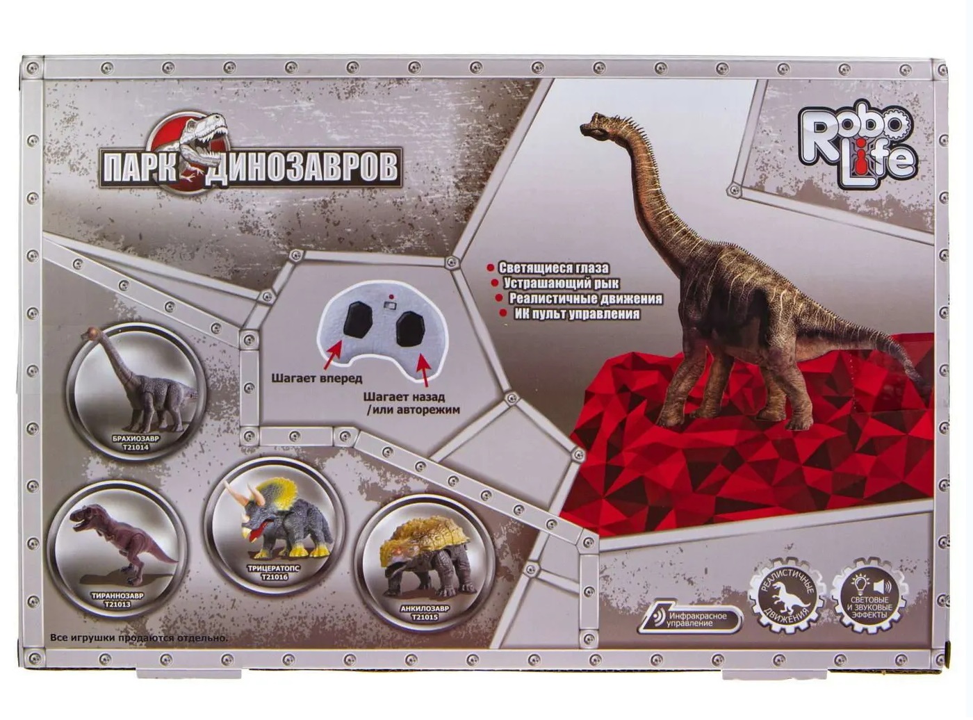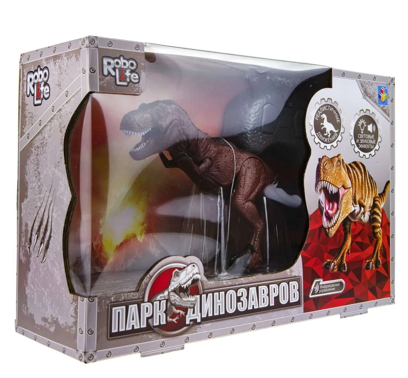 Робот динозавр 1TOY RoboLife Тираннозавр со световыми и звуковыми эффектами перенесет ребенка в мир юрского периода и подарит огромное количество эмоций! Наша интерактивная игрушка максимально похожа на настоящего динозавра: имеет реалистичный окрас, во время движения динозавр открывает и закрывает пасть, издает устрашающий рык! При включении глаза динозавра загорятся. Для авто-режима нажмите правую кнопку на пульте управления, для выхода из авто-режима нажмите правую кнопку еще раз. Игрушка динозавр не только способна заинтересовать, но и оказать помощь в развитии ребенка. Во время игры динозавр интерактивный способствует развитию логического мышления и мелкой моторики рук. Динозаврик станет отличным подарком на новый год, день рождения и любой другой праздник. Динозавры игрушки подходят для детей старше 6 лет. Динозавр большой - это увлекательная игрушка для девочек и мальчиков! Робот динозавр интерактивный работает от незаменяемого химического тока 2,4V 80mAh (входит в комплект). Для зарядки игрушки достаньте шнур для подзарядки из бокового отсека пульта управления и вставьте штекер в зарядное гнездо на корпусе игрушке. Пульт управления работает от 3-х элементов питания типа ААА, не входят в комплект.