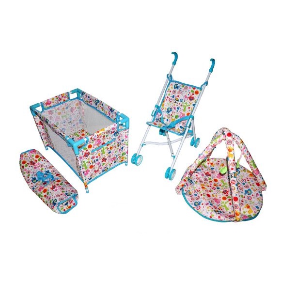 Комплект: кроватка, коляска-трость, коврик для кукол.