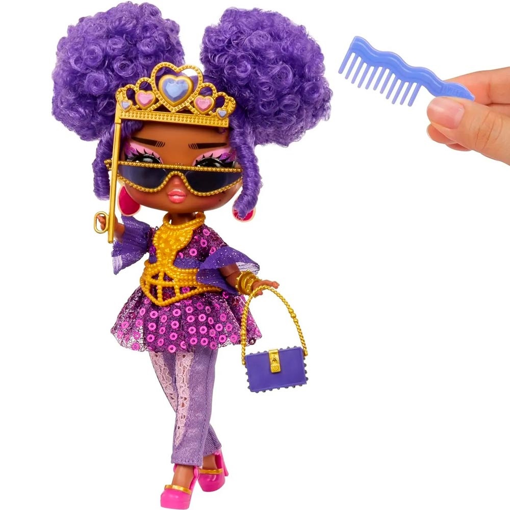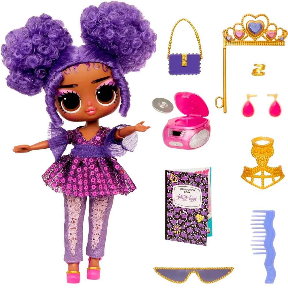 В комплекте есть более 10 сюрпризов, которые включают модную куклу Tweens, уникальную одежду, обувь, солнцезащитные очки, сумочку, аксессуары, проигрыватель компакт-дисков, реквизит в виде короны принцессы и расческу.