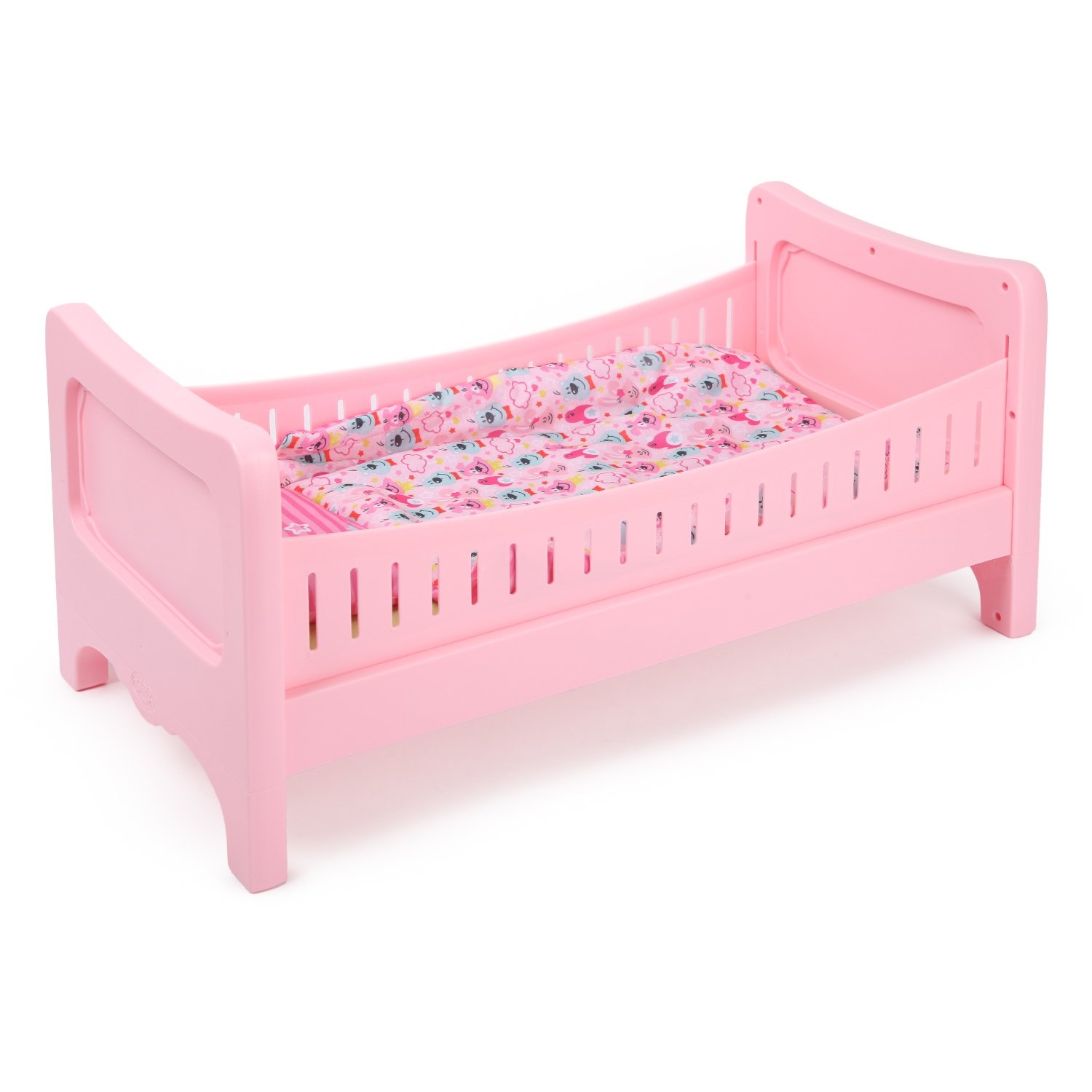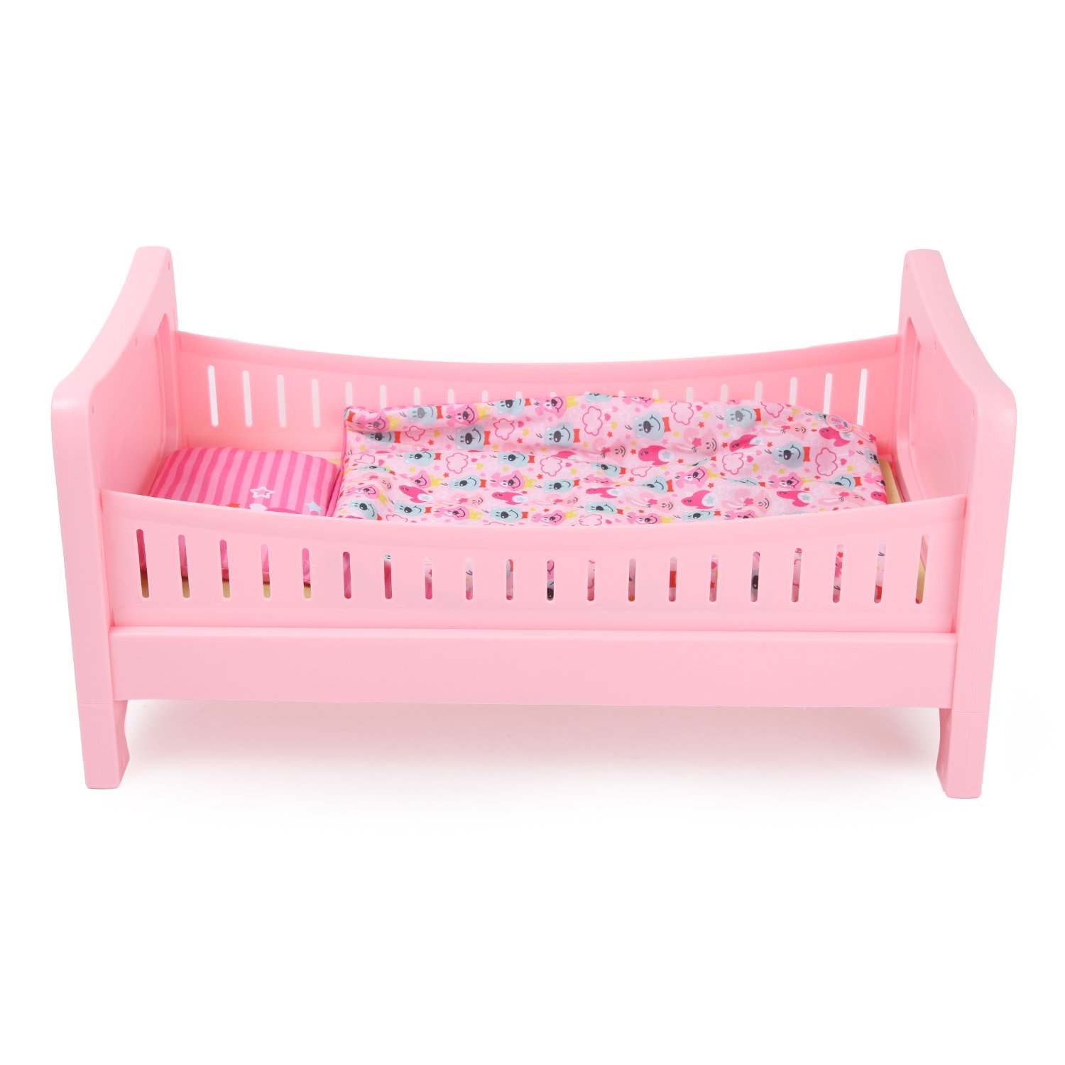По бокам – небольшие бортики. В такой кроватке могут спать как классические куклы, так и пупсы.