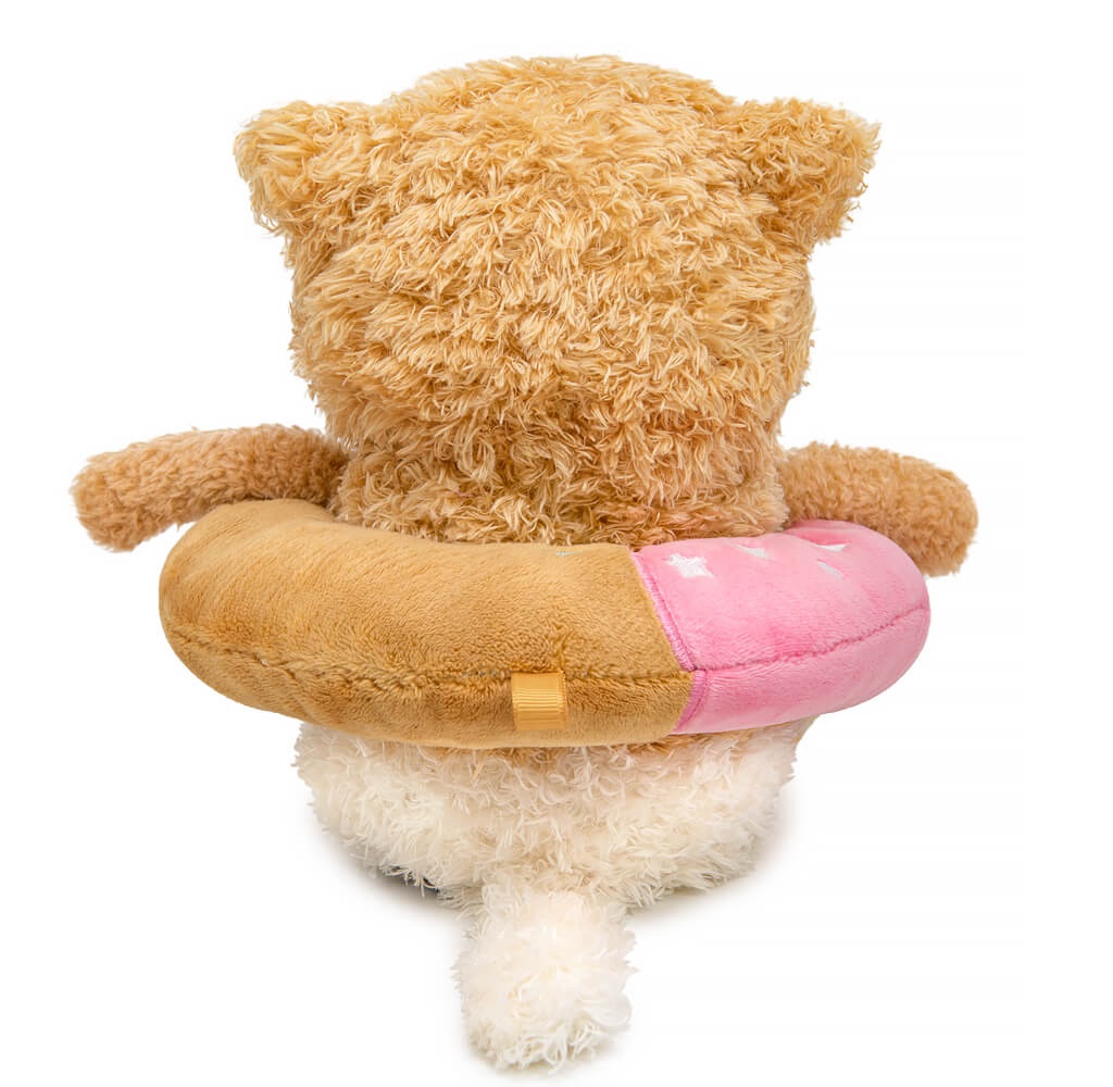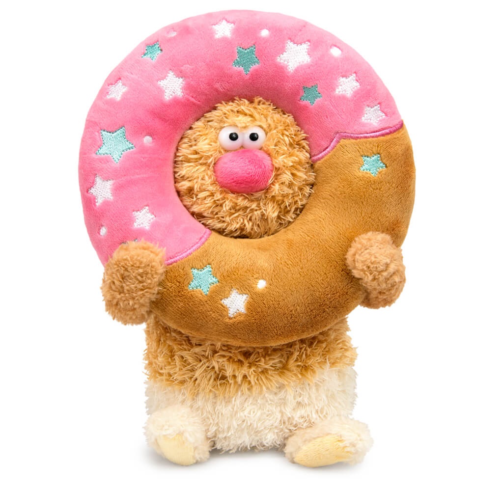 Очаровательный котик Раф из тактильно приятного эко меха в двух оттенках, цвета песочного печенья и цвета топленого молока. Котик уютно расположился в милом пончике, который сшит из карамельного и нежно-розового софта. Пончик украшен вышивкой и имеет петельку для того, чтобы его можно было использовать в качестве подвеса.