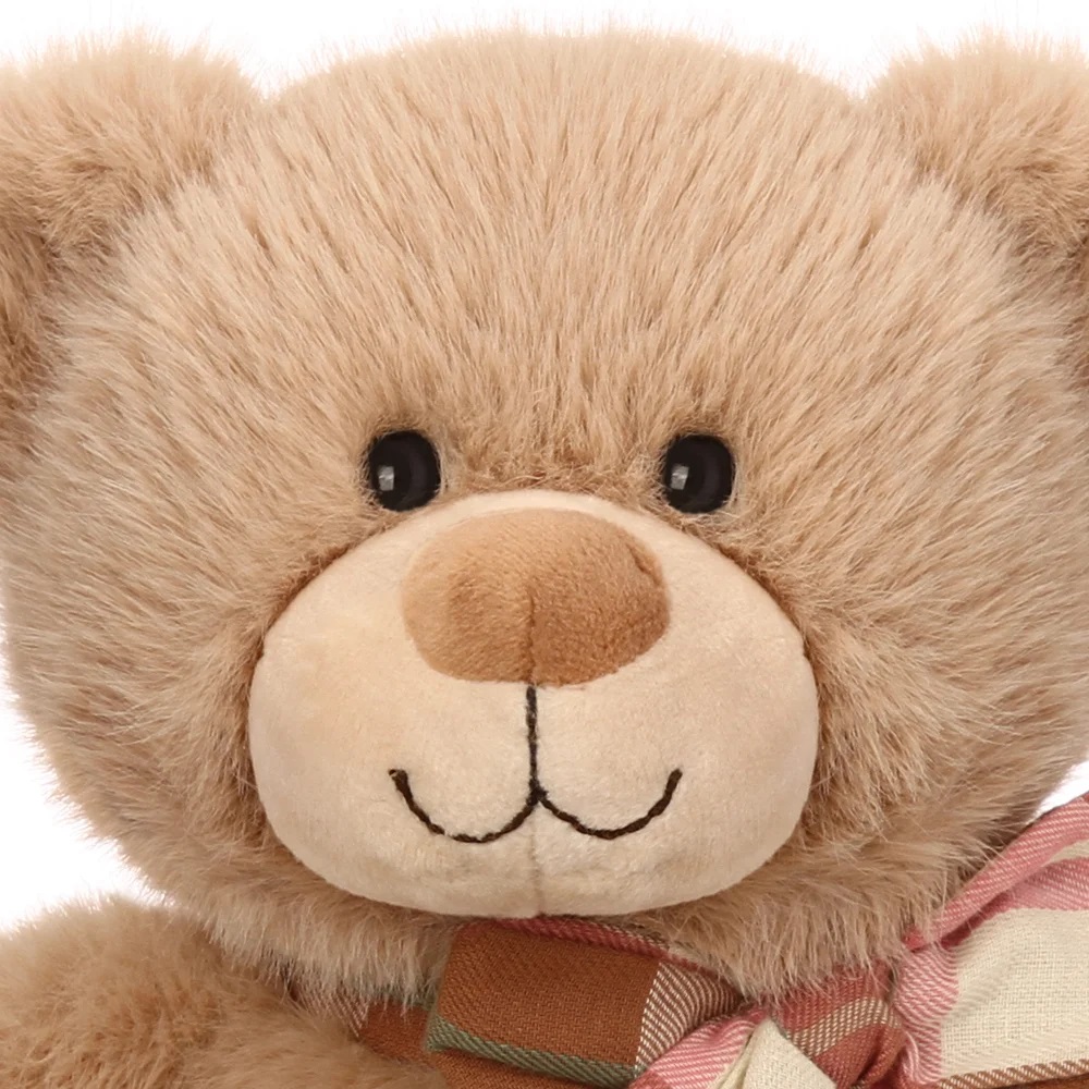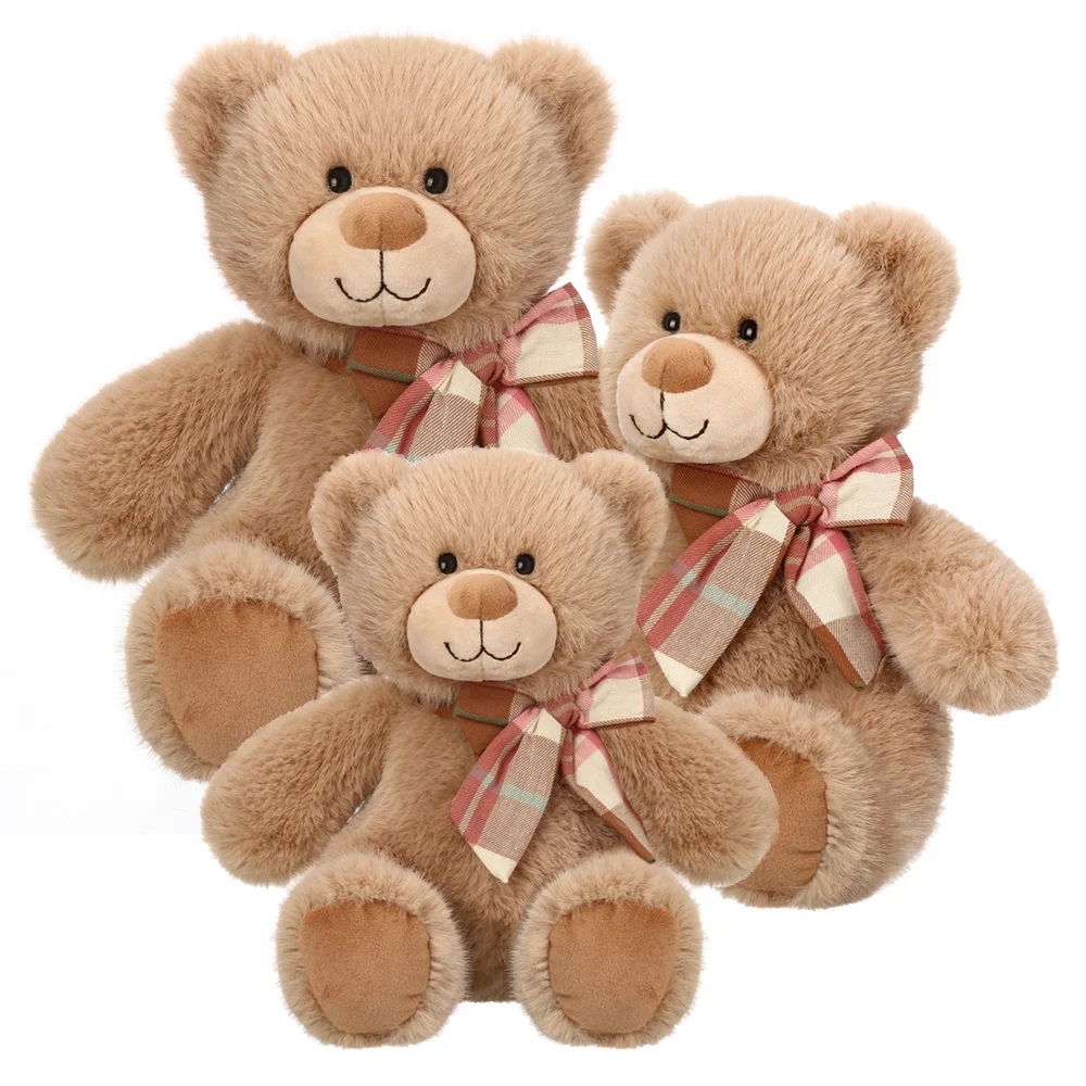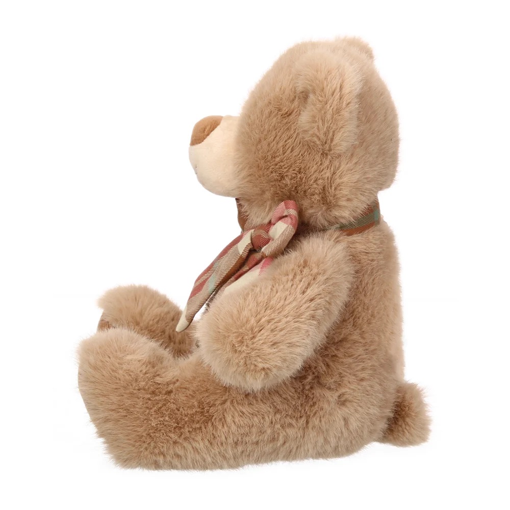 Очаровательные фирменные мишки ТМ Релана из высококачественного пушистого меха с бантиками из натурального текстиля в клетку, представлены в размере 30 см.