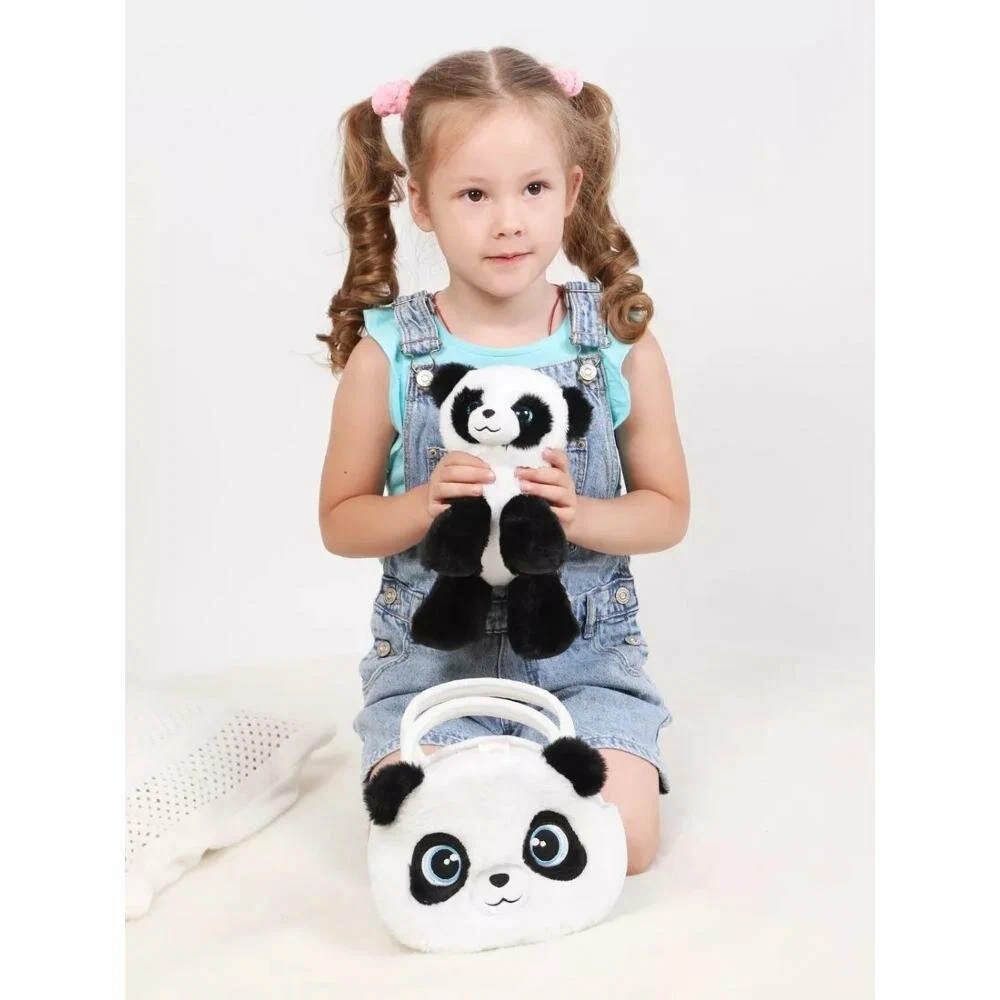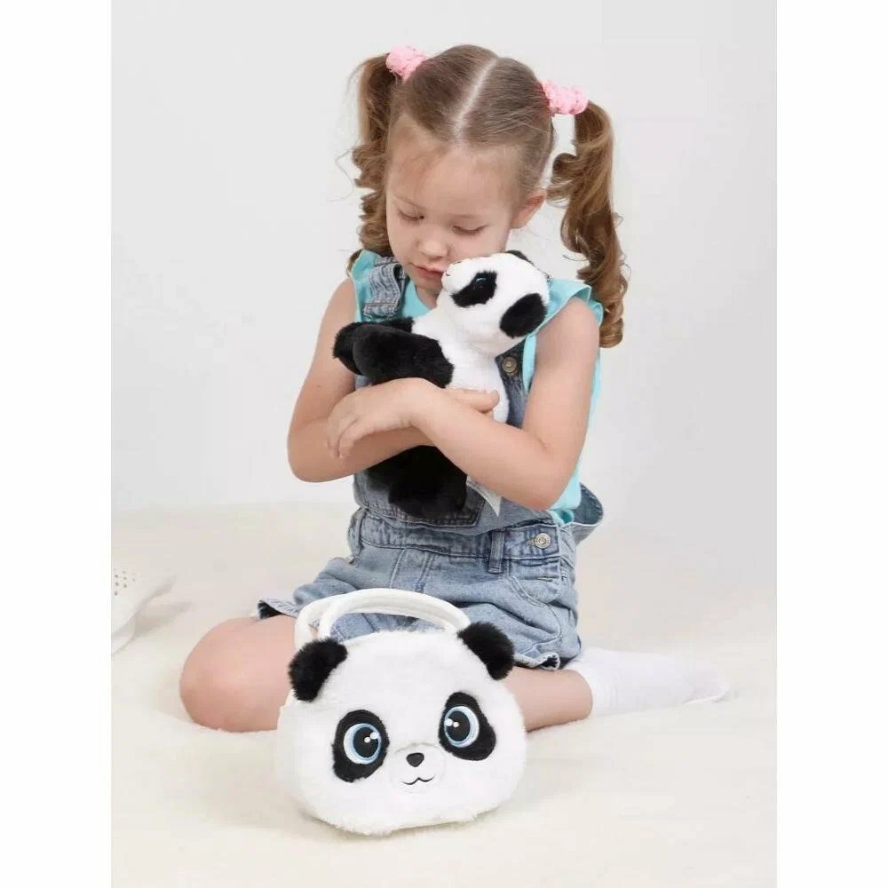 Мягкая игрушка «Панда в сумочке» 19 см Fluffy Family 682305. Милая панда с очаровательной внешностью и большими глазками понравится всем любителям пушистых питомцев. В комплекте с игрушкой прилагается мягкая сумочка, которая послужит не только местом для хранения и переноски панды, но и стилеобразующим аксессуаром для девочки! В сумочке одно отделение. Чтобы закрыть сумочку, можно повязать бант из атласной ленты. Размер сумочки (ДxШxВ): 19 x 7 x 15 см. Размер панды (ДxШxВ): 22 x 8 x 14 см.