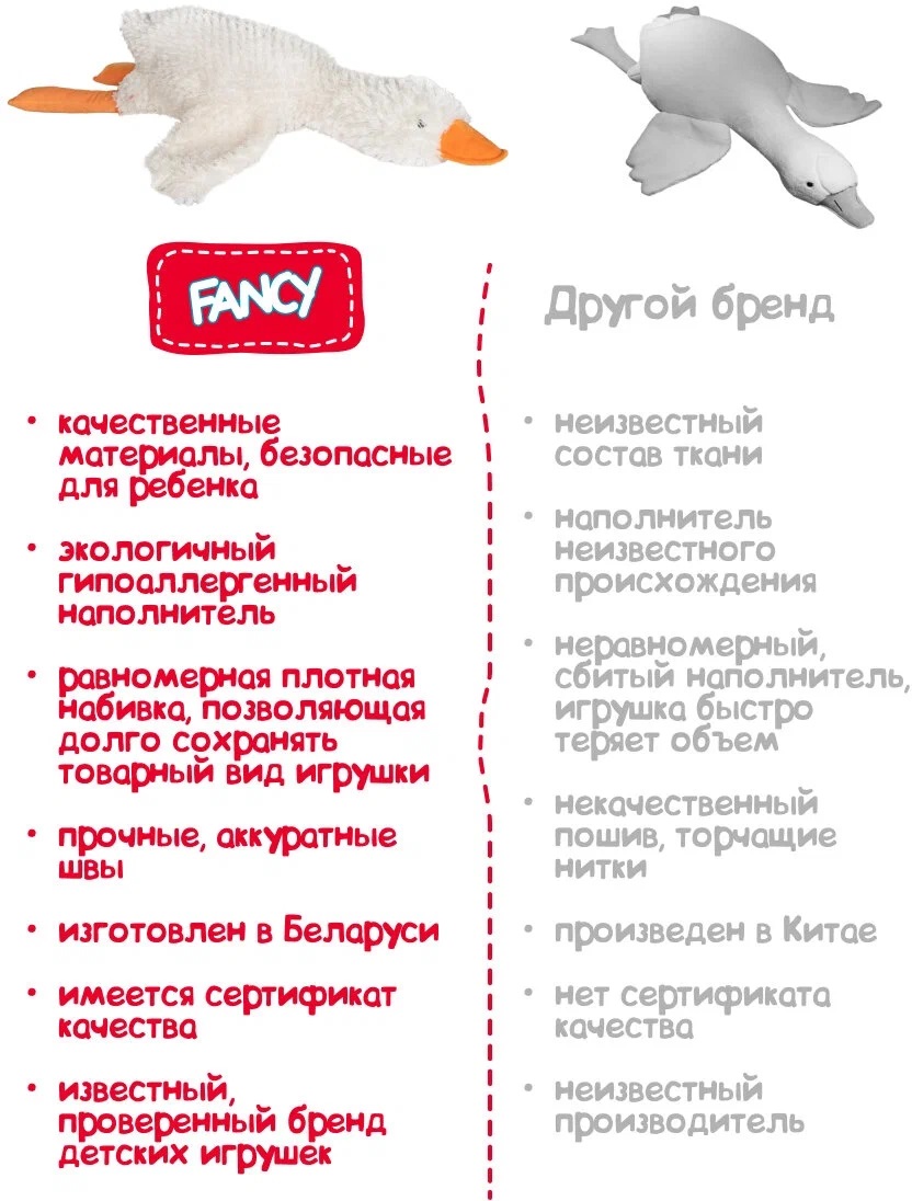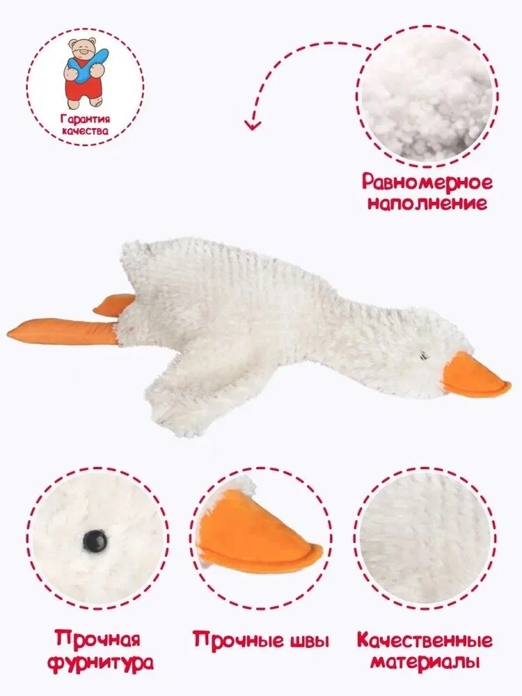 Я гусь и в вашу жизнь сейчас ворвусь! Трендовая мягкая игрушка антистресс гусь Оскар - идеальный подарок для каждого! Плюшевые игрушки всегда дарят радость, но гусь от Fancy в этом просто чемпион. Он вызывает радость с первого взгляда, любовь со второго и обожание с третьего. С гусём вы всегда будете в центре внимания. Гусь от Fancy всегда на тренде - он идеально вписывается в любой интерьер и наполняет эмоциями вашу жизнь и фото. Гусь сделан из качественных и безопасных материалов, и не боится стирки. Большой пушистый гусь подойдет в качестве подарка мужчине, женщине, любимой, жене, подруге, другу, девушке, парню, дочке, сыну, внучке, девочке, мальчику, племяннице, крестнице, сестре, брату, коллеге. Станет отличным прикольным подарком на Новый год и рождество, 14 и 23 февраля и на 8 марта для маленьких и больших детей. Гусь обнимусь игрушка, это милый подарок, который не хочется выпускать из рук. С гусём всё становится лучше!