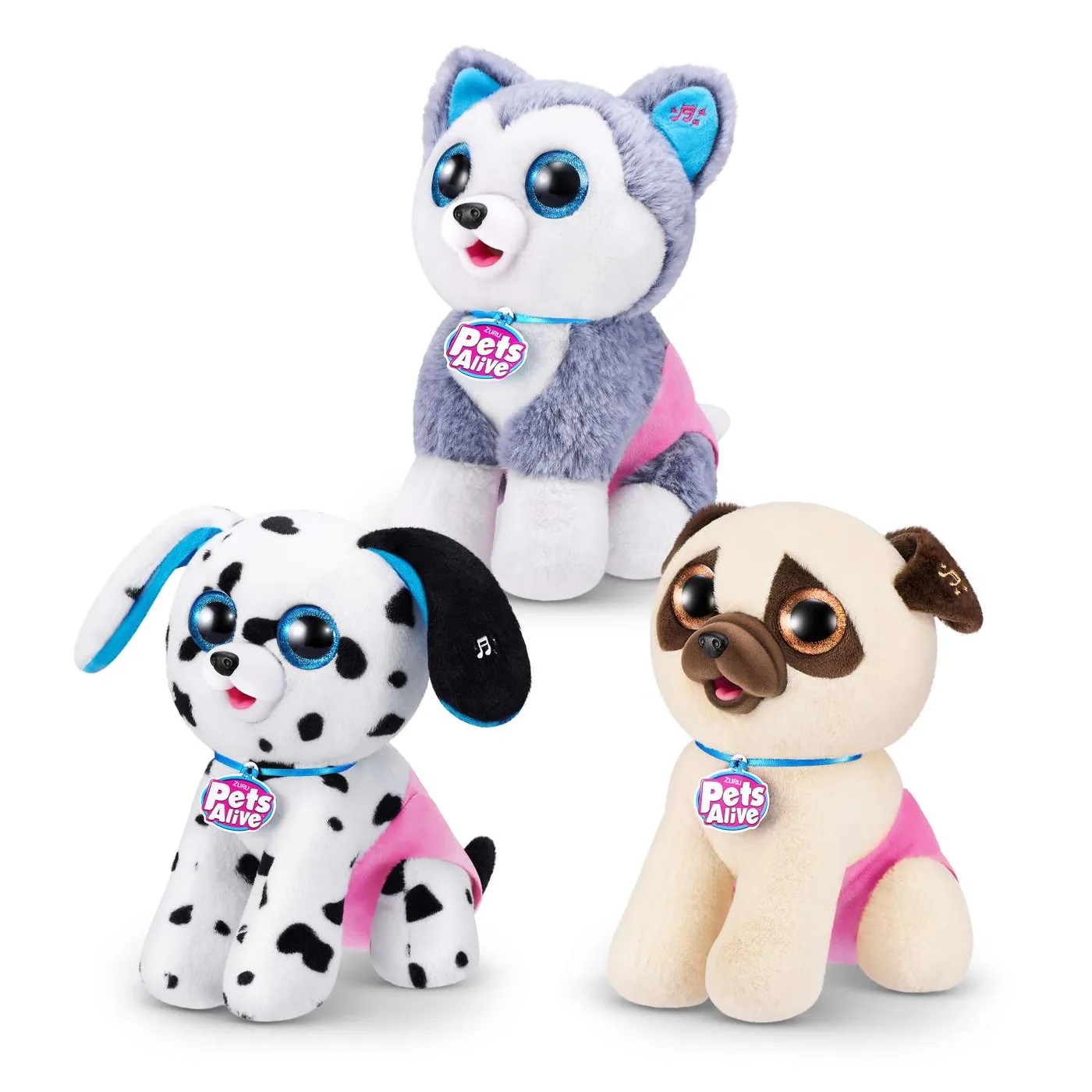 О-о-о! Эти очаровательные щенки совсем как настоящие. Послушайте, как они лают. Покормите своего питомца, а когда его животик наполнится, ему нужно будет отлучиться в туалет! Смотрите, как он какает, меняя при этом цвет. Кормите его снова и снова — вот-вот он опять будет готов к прогулке! Вам предстоит собрать коллекцию из 3 щенков: мопса, далматина и хаски. Им не терпится с вами подружиться!