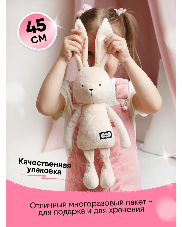 Представляем вам нашего плюшевого зайчика – идеальный подарок для детей и взрослых! Этот мягкий и уютный любимец станет настоящим другом для всех малышей, школьников и подростков. С нежными ушами и милой мордашкой, наш зайка создан для обнимашек и сладкого сна. Он будет верным спутником вашего ребенка, начиная с грудных новорожденных от 0 месяцев и для детей постарше.