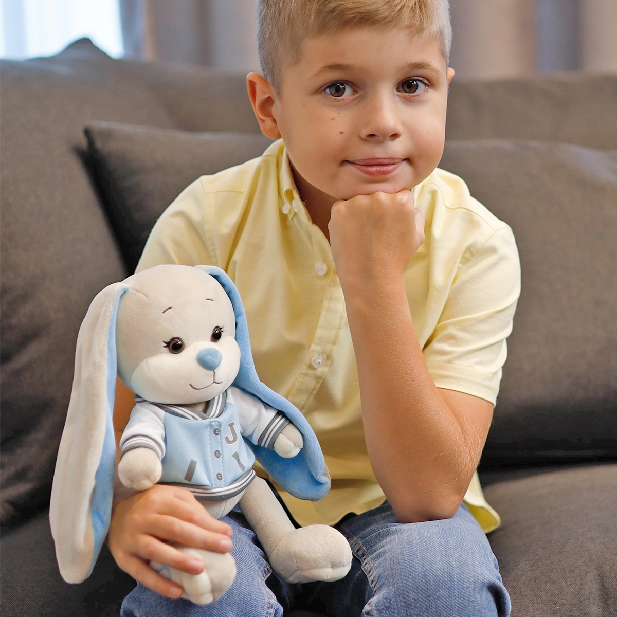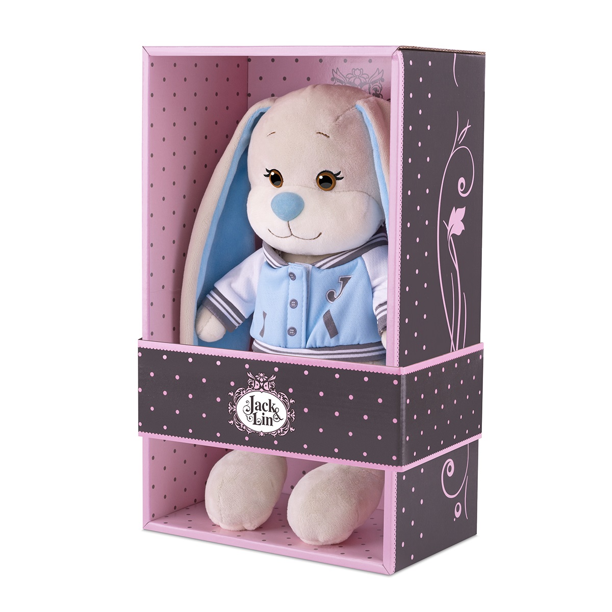 Зайка Жак в голуб. бомбере, 20 см