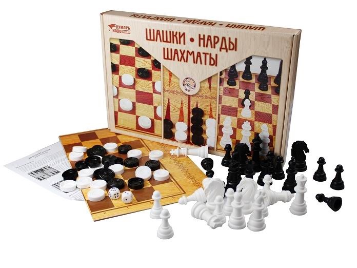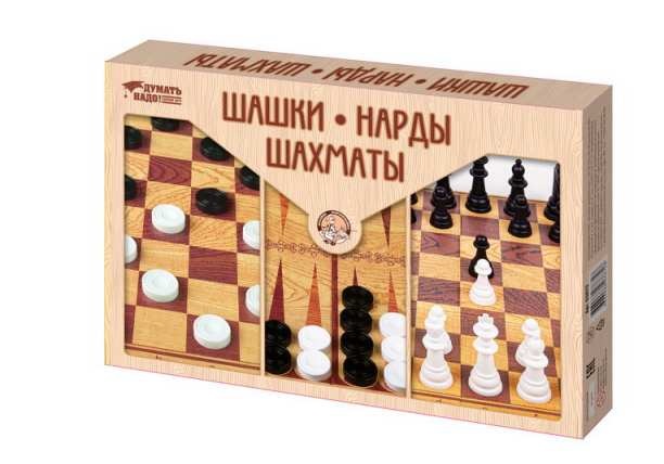 Три классические настольные игры в одной коробке – «Шашки, Нарды, Шахматы»!