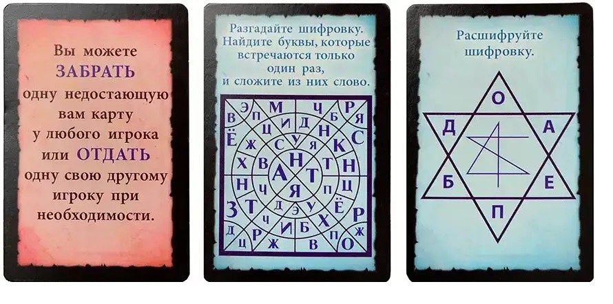 Карта с решённым заданием кладётся рядом с полем со стороны игрока под соответствующей частью кода. Если игрок не может выполнить задание, у него есть возможность воспользоваться картой помощи или картой выбора. После использованные карты помощи и выбора убираются в коробку.