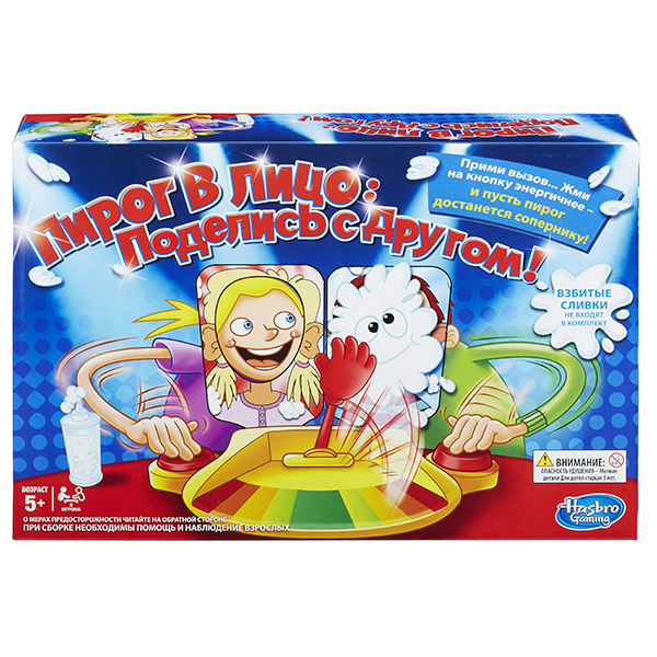 Настольная игра "Пирог в лицо: поделись с другом!" для 2 участников от компании Hasbro - это абсолютно новая, усовершенствованная и по-настоящему соревновательная версия суперпопулярной игры! Игрокам предстоит предпринять все возможное, чтобы торт полетел в лицо сопернику, для чего необходимо нажимать на кнопку, расположенную рядом с каждым из них.