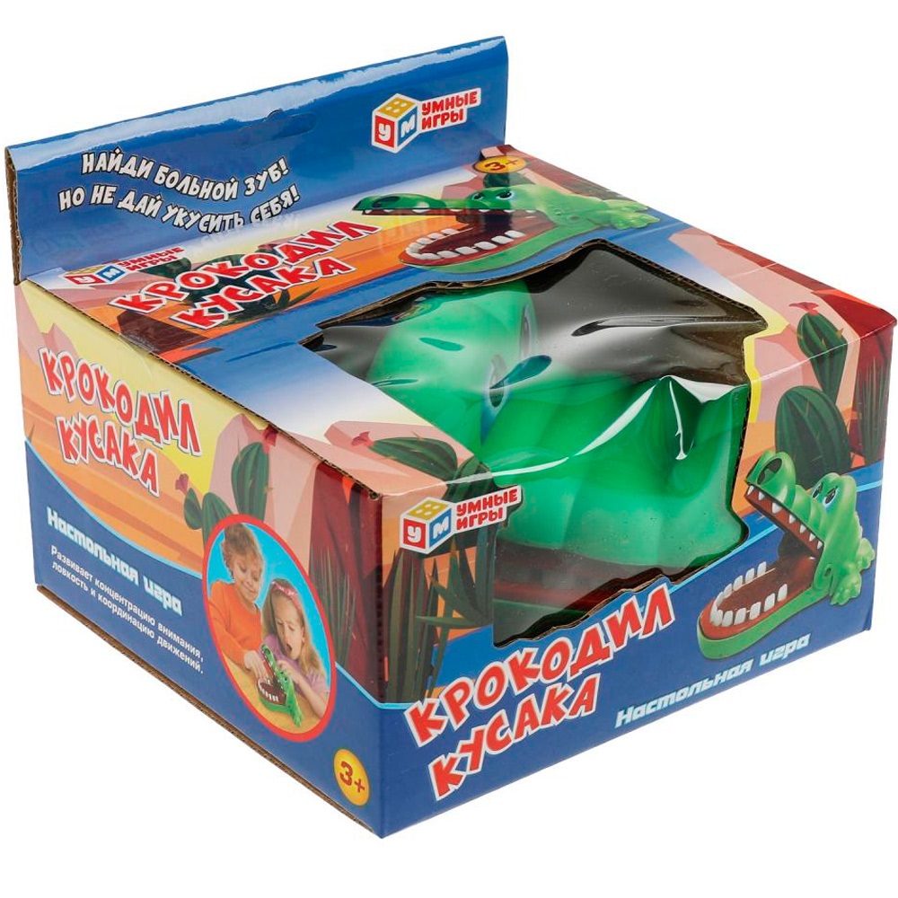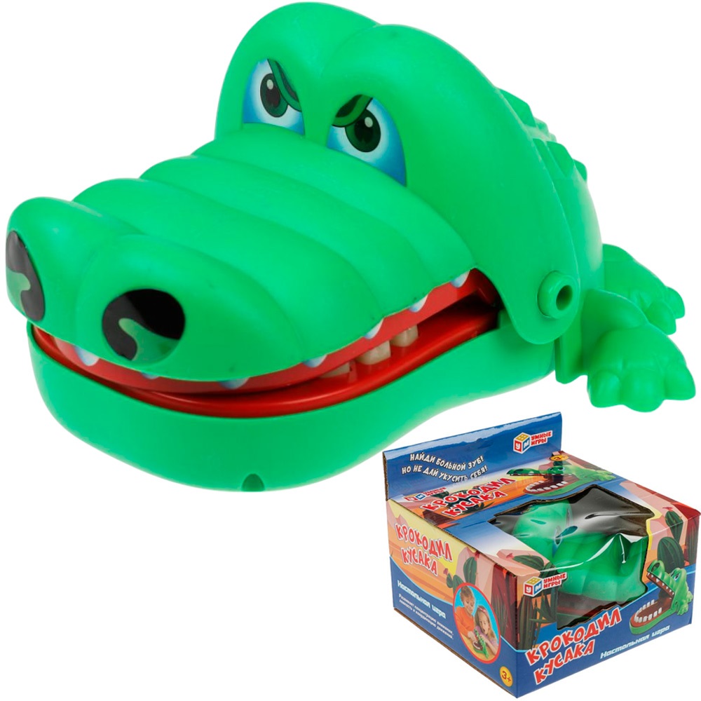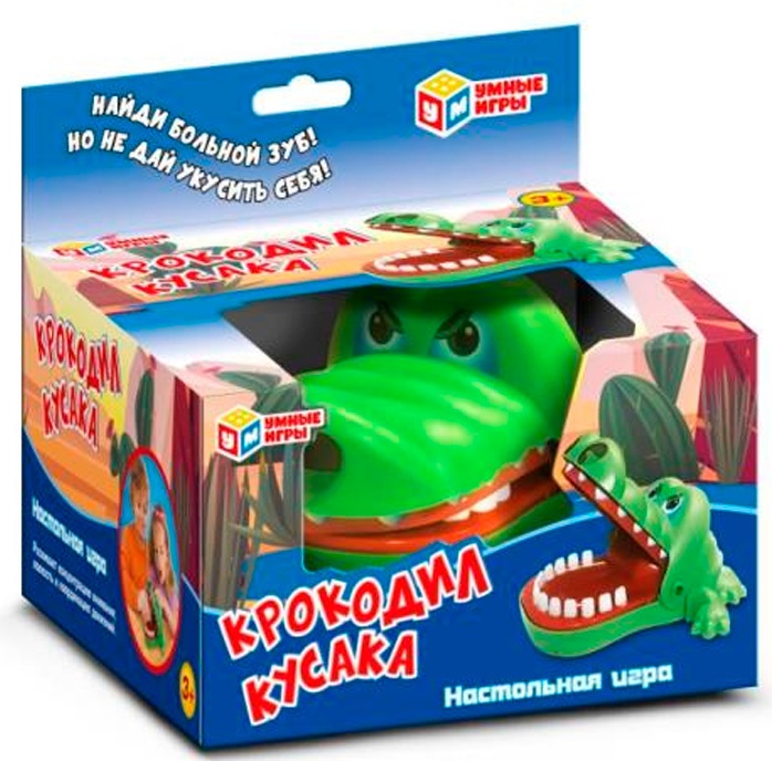 Эта занимательная игра позволит весело и динамично провести время. Цель игры - найти у крокодила больной зуб, но при этом не дать себя укусить. Фигурка грозного ящера с открывающейся и неожиданно захлопывающейся пастью приведёт детей в восторг. Благодаря компактным размерам игру можно брать с собой в поездки.