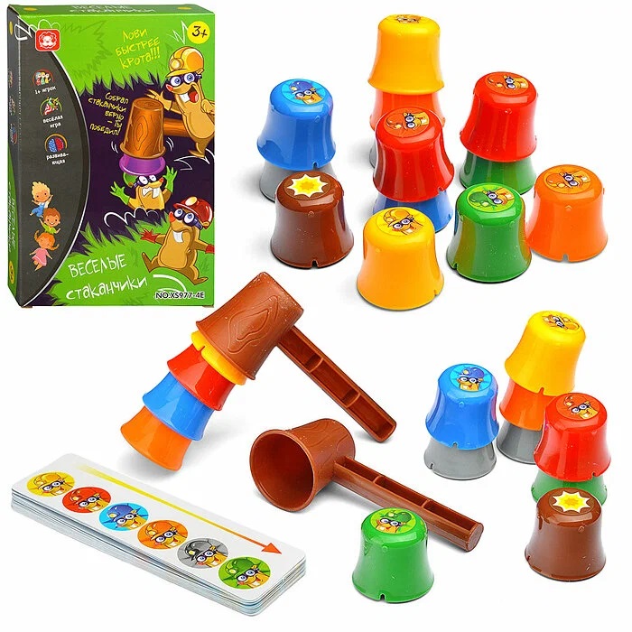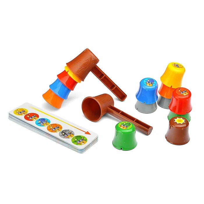 • Цель игры: первым собрать стаканчики, ударяя по ним молоточком, в соответствие с заданием на карточке.
