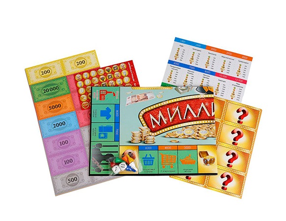 Настольная игра «Миллионер» предназначена для знакомства детей с товарно-денежными отношениями, улучшения навыков счёта и развития сообразительности. Задача игроков - перемещаясь по игровому полю скупать объекты, которые смогут принести дивиденды. Выигрывает тот участник, который окажется к финалу игры самым богатым. Игра представлена красочно исполненным игровым полем, фишками, карточками, жетонами, игровыми деньгами и кубиками для определения количества ходов. Игроки поочерёдно бросают кубик и, совершая определённое количество ходов, выполняют задание, которое им выпадает. Задача каждого игрока заработать деньги и увеличить свои капитал. Для увеличения капитала игроки могут приобретать различные предприятия: банки, кинотеатры, супермаркеты, которые смогут принести им доход. Выигрывает участник, который окажется на финише самым богатым миллионером. Игра способствует тренировке навыков счёта, развивает внимание и сообразительность, учит товарно-денежным отношениям. Изделие сертифицировано и изготовлено из качественных материалов. В наборе: карточки, жетоны, игровые деньги, игровое поле, фишки, 2 игральных кубика, инструкция. Количество предполагаемых игроков: 2-6. Состав: картон, пластик. Рекомендовано детям от 5-ти лет.