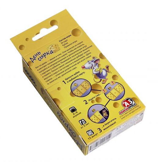 Настольная игра "День сырка" - это замечательная семейная игра, благодаря которой можно весело провести время. Она напоминает классическую игру домино, только здесь вместо фишек - карты, а игроки выступают в качестве мышат.