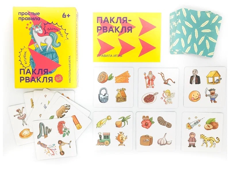 Пакля-Рвакля непривычная, веселая и очень азартная игра для всей семьи. На удивление дети часто находят рифмы быстрее взрослых. Пока взрослые копаются в своем багаже опыта и стандартов, дети легко рифмуют даже самые неожиданные вещи. Небольшой размер коробки позволяет легко брать игру в поездки. А невысокая цена делает ее замечательным, недорогим, но ценным подарком.