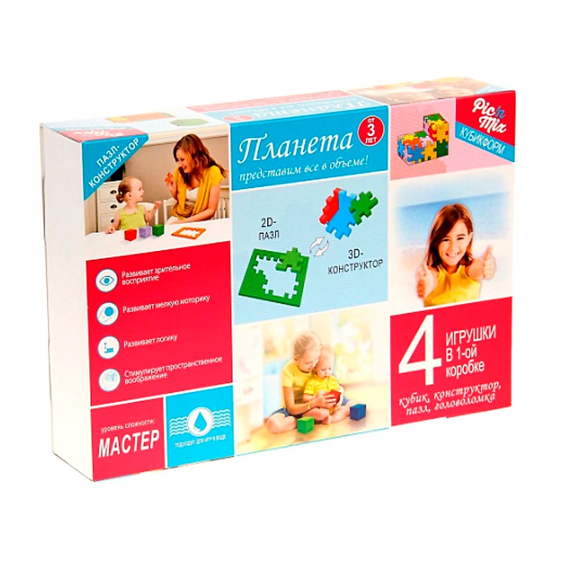 Серия обучающих пазл-конструкторов «Кубикформ» TM Pic&Mix стимулирует развитие мышления, логики, пространственного воображения, памяти, координации, мелкой моторики, а также помогает усвоить навыки тактильного восприятия.